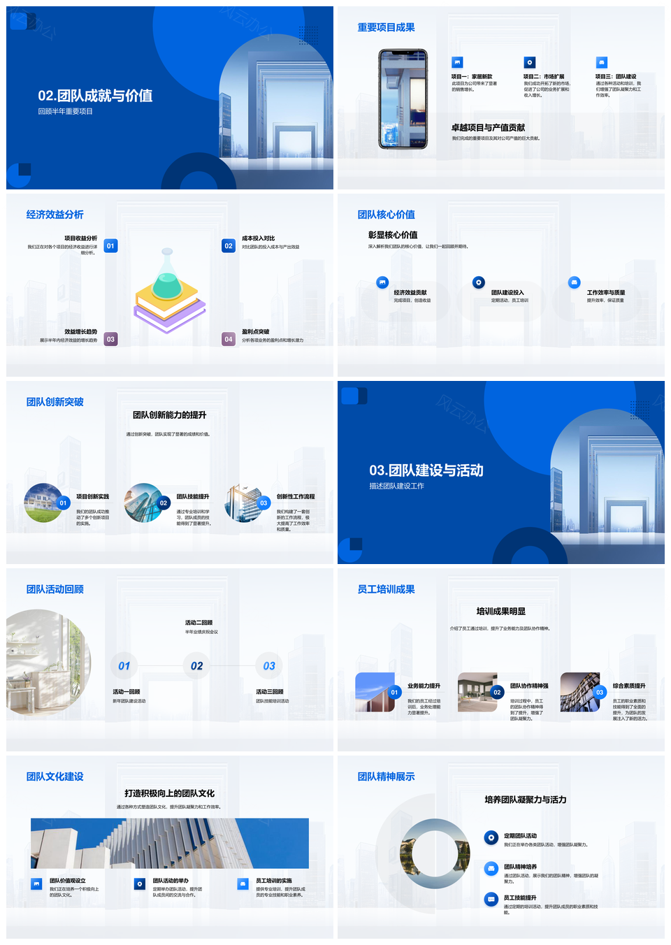 这是一款专为商务与科技领域打造的PPT模板,采用浅蓝至深蓝渐变配色,传递专业与沉稳气质,同时融入未来科技感。极简的版式设计摒弃多余装饰,通过清晰的信息层级与模块化布局,确保内容精准传达。图表组件以低饱和色块搭配线条元素,逻辑直观且不失设计深度。模板支持快速适配数据、图文等场景,助力高效构建符合职场标准的提案框架。理性克制的视觉风格平衡了专业严谨与创新灵感,适用于科技产品发布、商务战略规划、学术成果展示等场合。用直观的结构与可信的视觉语言,让思维脉络自然呈现。