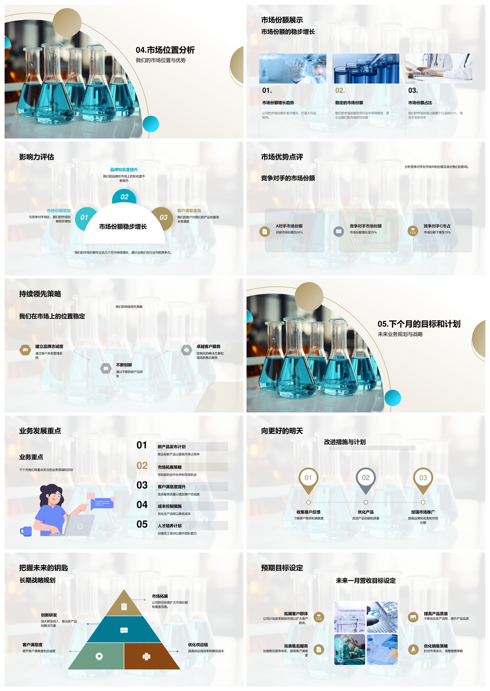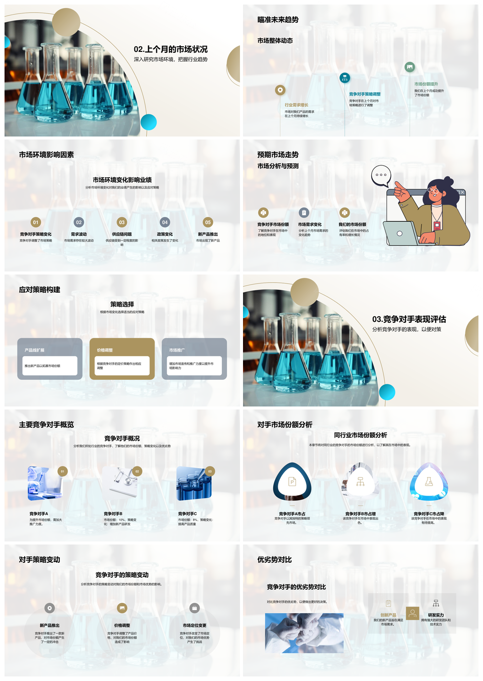 这是一张化工月度业绩数据解析销售预期市场策略竞争份额PPT模板,包含化工、月度业绩数据、解析、销售、预期、市场策略、竞争、份额等主题内容,也可用作化工月度业绩数据、月度业绩数据解析、业绩数据解析销售、数据解析销售预期、解析销售预期市场、销售预期市场策略、预期市场策略竞争、市场策略竞争份额、化工月度业绩、月度业绩数据、业绩数据解析、数据解析销售、解析销售预期、销售预期市场、预期市场策略等PPT场景使用。 风云办公提供的化工月度业绩数据解析销售预期市场策略竞争份额PPT模板,下载格式为pptx,一共28页,作品中文字及图均可以修改和编辑,图片更改请在作品中右键图片并更换,文字修改请直接点击文字进行修改。