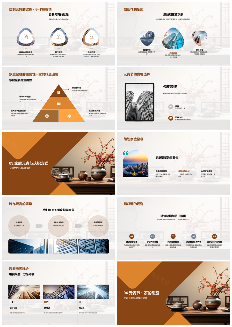 风云办公提供的元宵阖家聚自制元宵猜灯谜放烟花PPT模板,下载格式为pptx,一共26页,作品中文字及图均可以修改和编辑,图片更改请在作品中右键图片并更换,文字修改请直接点击文字进行修改。