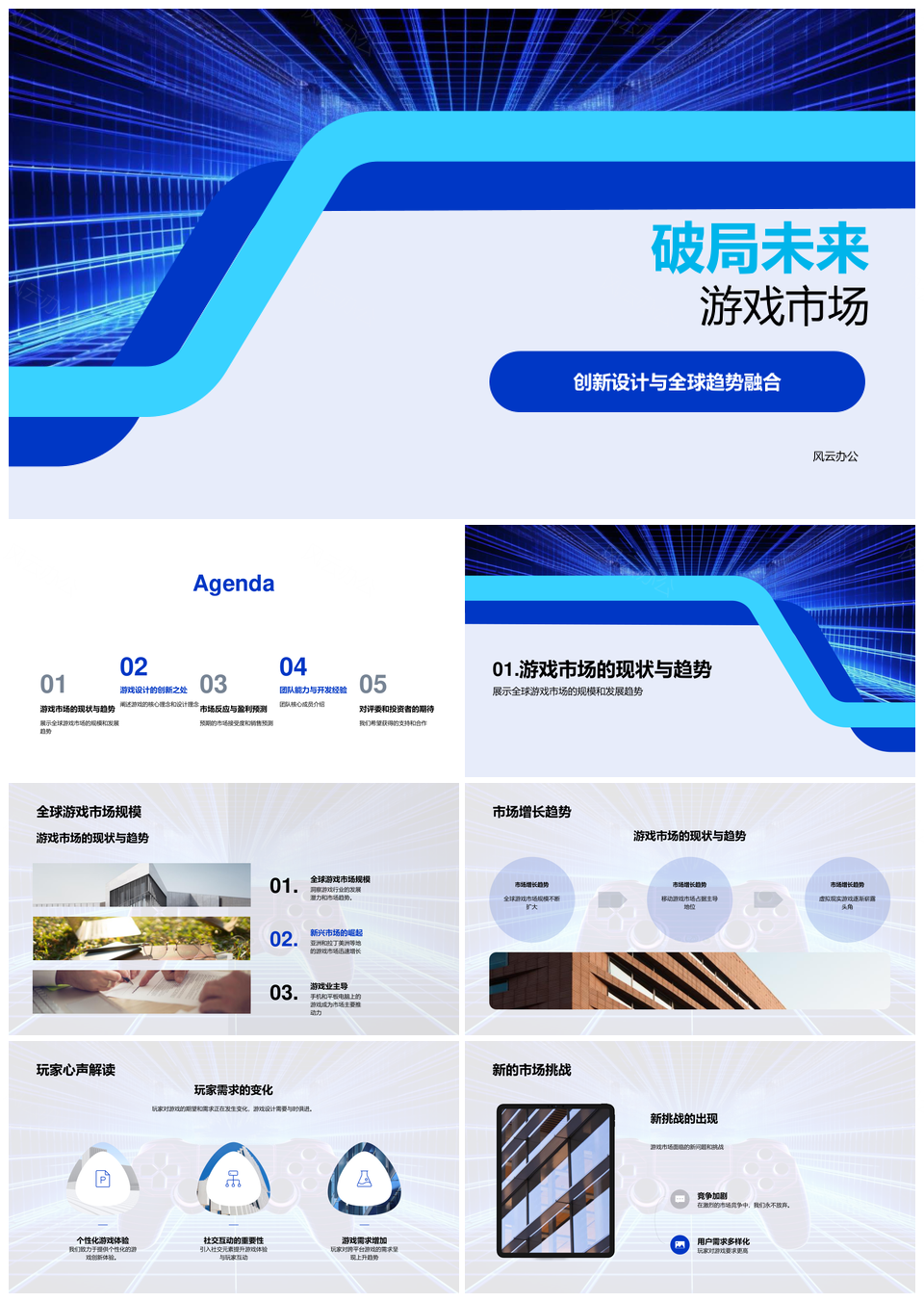 风云办公提供的未来游戏市场创新设计与技术全球破局PPT模板,下载格式为pptx,一共32页,作品中文字及图均可以修改和编辑,图片更改请在作品中右键图片并更换,文字修改请直接点击文字进行修改。