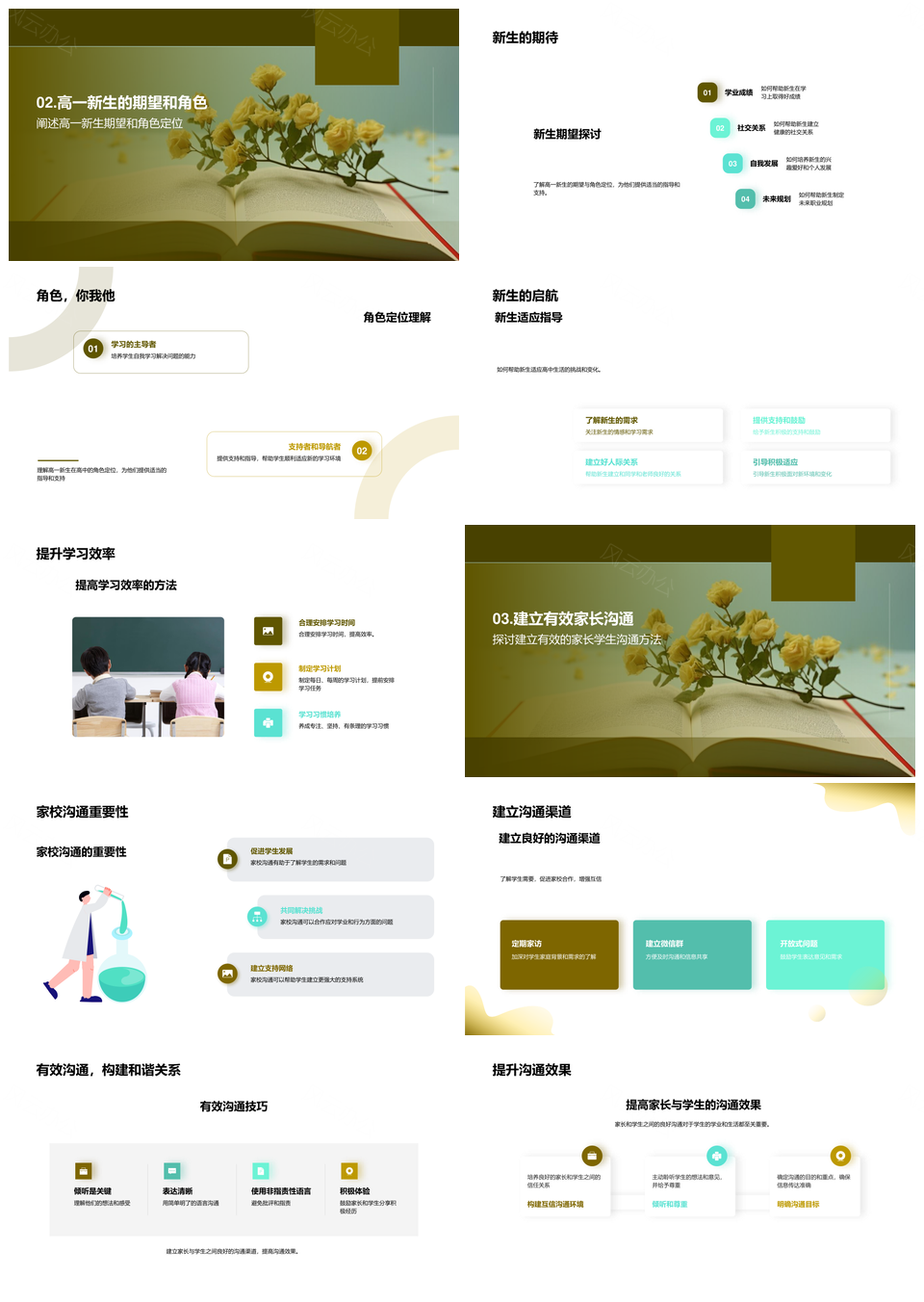 家长助力高中新生过渡沟通支持学习时间管理PPT模板推荐