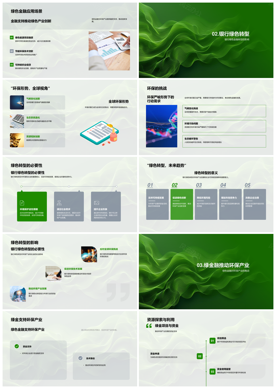 这是一张绿色金融环保产业银行转型融资风险PPT模板,包含绿色金融、环保产业、银行转型、融资风险等主题内容,也可用作绿色金融环保产业、环保产业银行转型、产业银行转型融资、银行转型融资风险、绿色金融环保、金融环保产业、环保产业银行、产业银行转型、银行转型融资、转型融资风险、绿色环保产业、金融产业银行、环保银行转型、产业转型融资、银行融资风险等PPT场景使用。