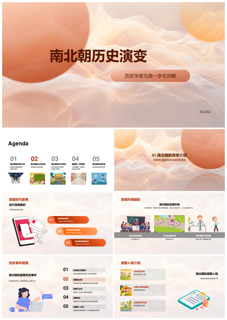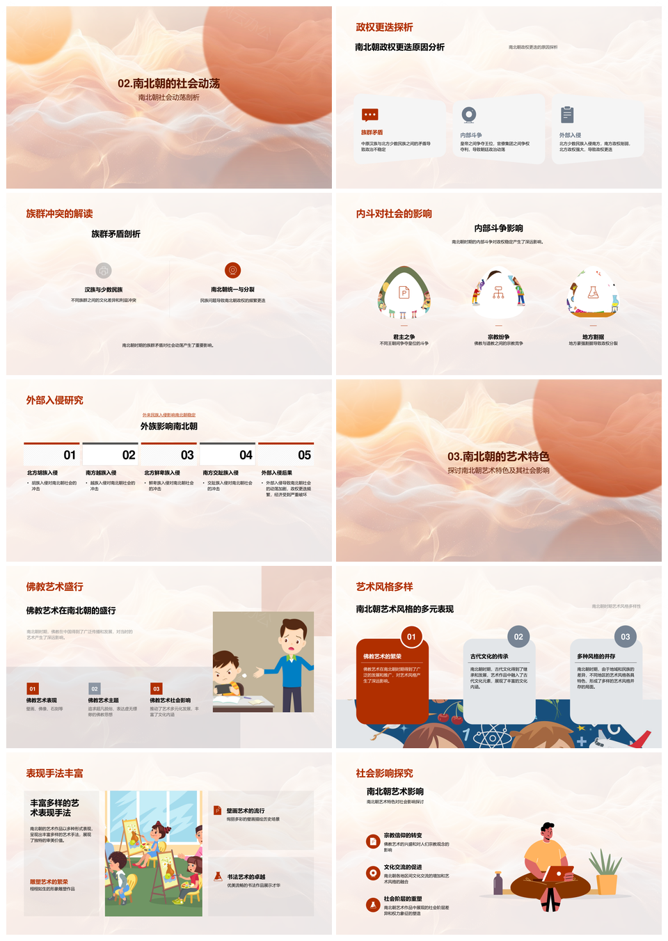 风云办公提供的南北朝政权族群内外斗争演变史PPT模板,下载格式为pptx,一共28页,作品中文字及图均可以修改和编辑,图片更改请在作品中右键图片并更换,文字修改请直接点击文字进行修改。