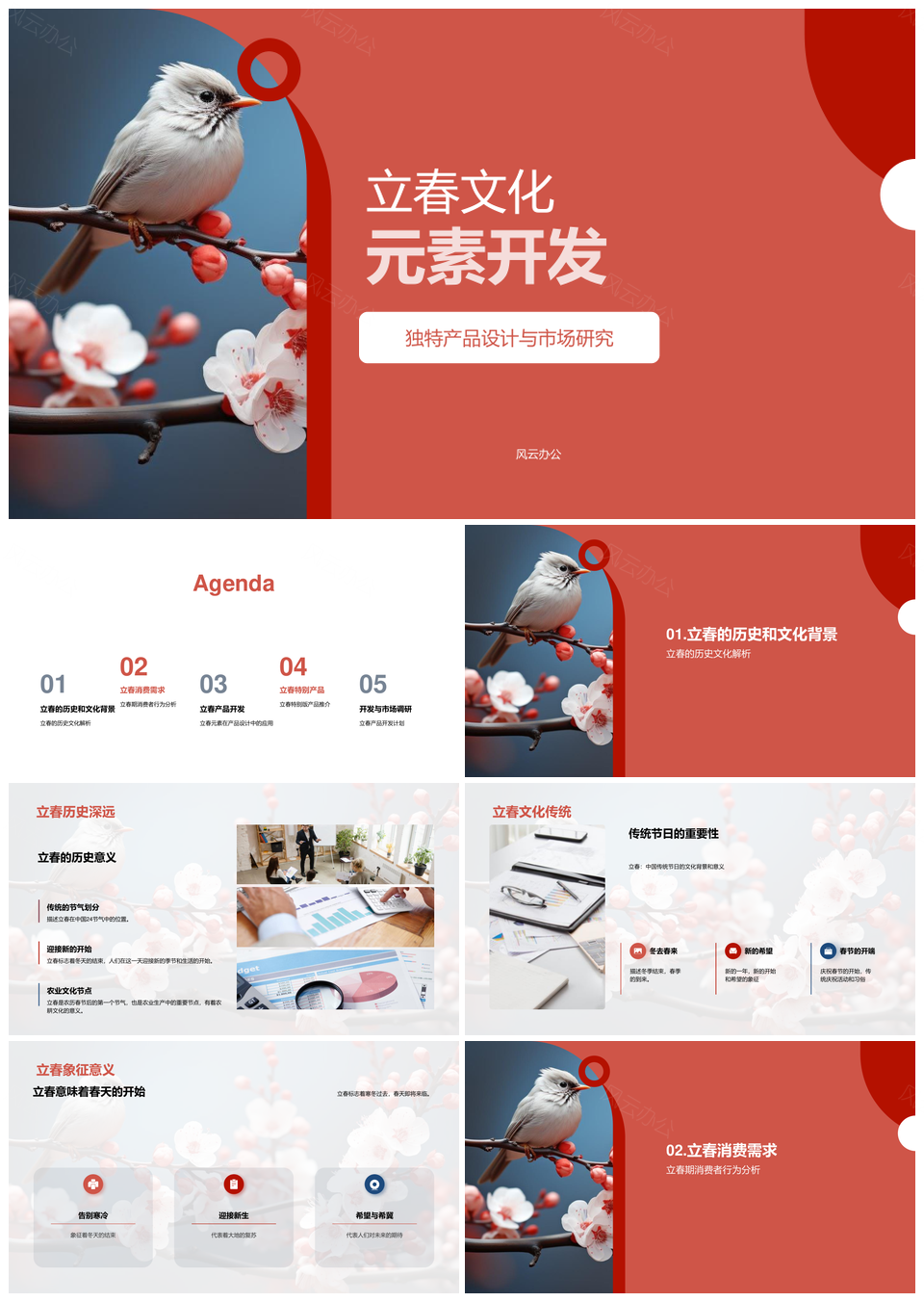 风云办公提供的立春文化元素产品开发计划与市场策略PPT模板,下载格式为pptx,一共23页,作品中文字及图均可以修改和编辑,图片更改请在作品中右键图片并更换,文字修改请直接点击文字进行修改。