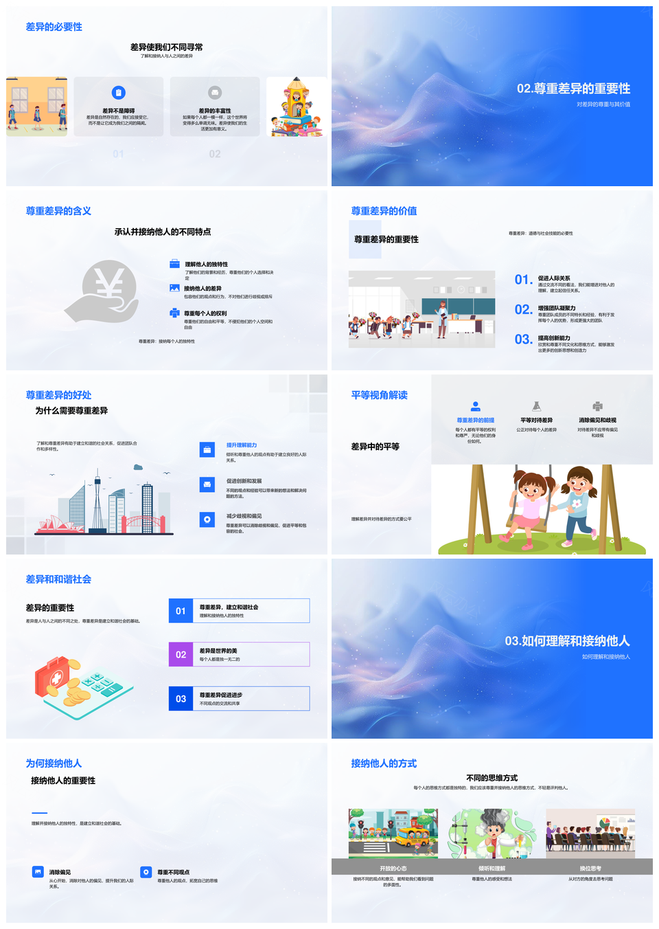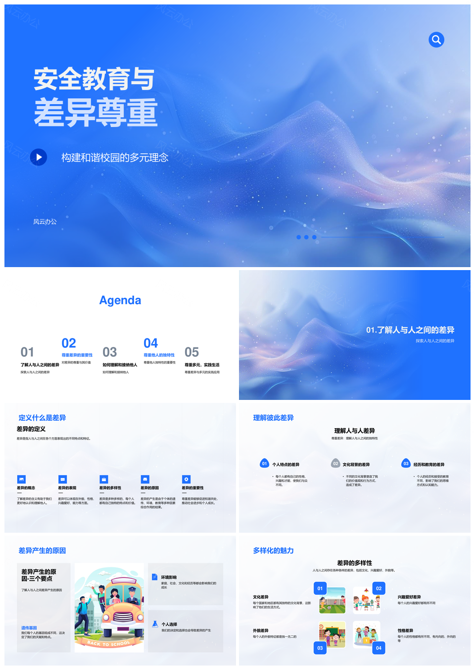 风云办公提供的安全教育差异尊重多元共建和谐校园PPT模板,下载格式为pptx,一共33页,作品中文字及图均可以修改和编辑,图片更改请在作品中右键图片并更换,文字修改请直接点击文字进行修改。