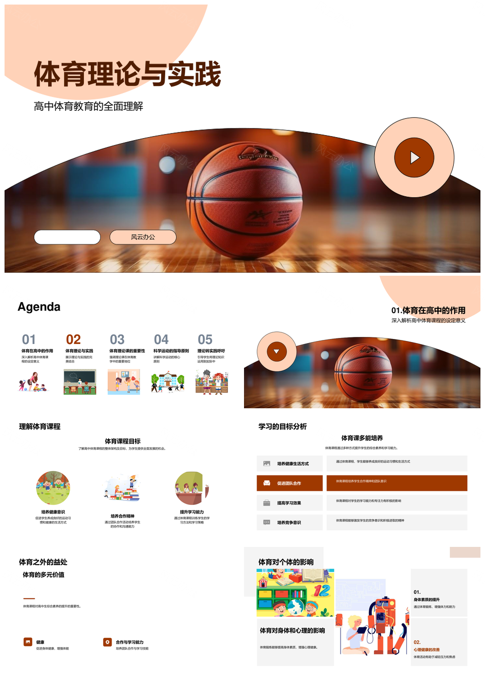 风云办公提供的高中篮球体育安全防护与多元价值实践PPT模板,下载格式为pptx,一共28页,作品中文字及图均可以修改和编辑,图片更改请在作品中右键图片并更换,文字修改请直接点击文字进行修改。