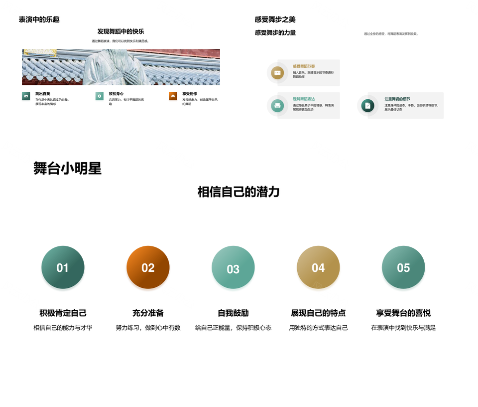 风云办公提供的小舞台之星一年级舞蹈技巧与表演步骤PPT模板,下载格式为pptx,一共31页,作品中文字及图均可以修改和编辑,图片更改请在作品中右键图片并更换,文字修改请直接点击文字进行修改。