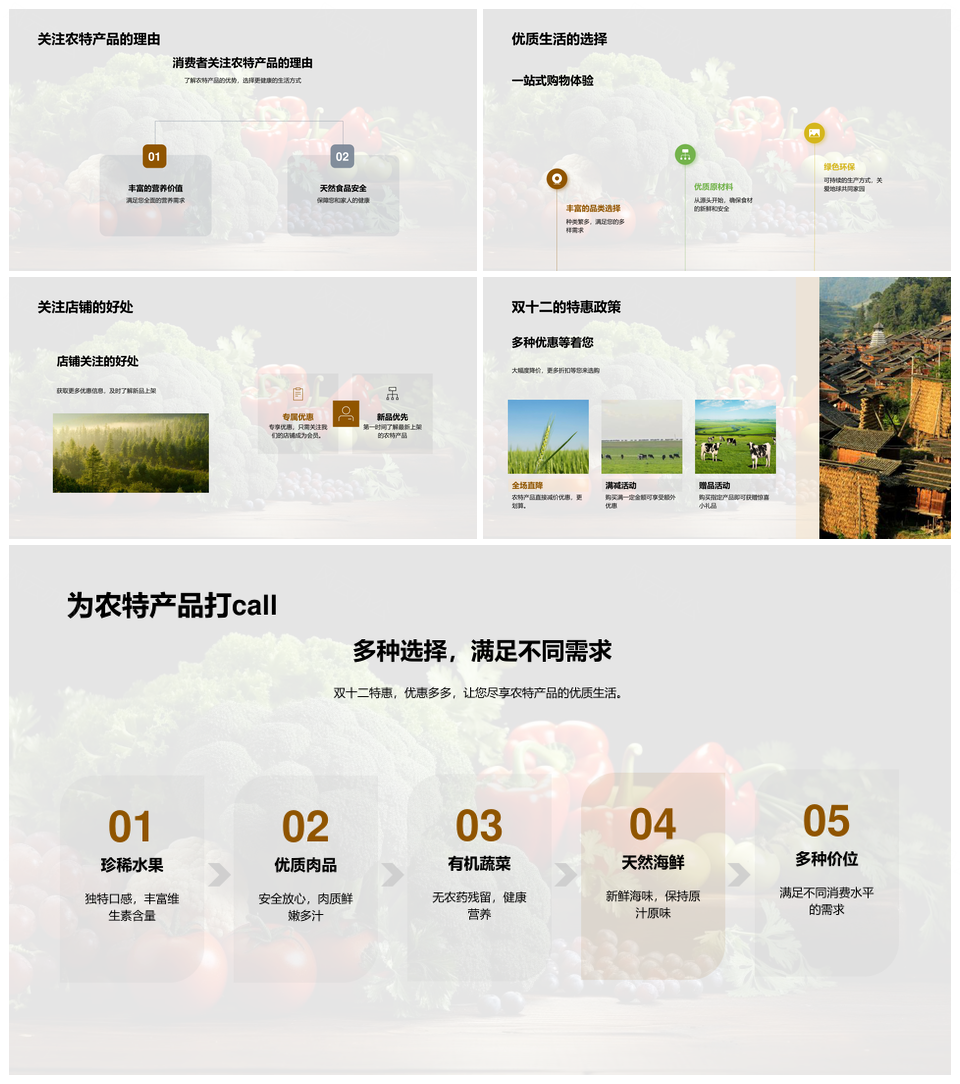 这是一张双十二农特产品电商运营专员助力优质原生态生活PPT模板,包含双十二、农特产品、电商、运营专员、助力、优质、原生态、生活等主题内容,也可用作双十二农特产品电商助力、双十二农特产品优质生活、农特产品电商助力优质、电商运营专员助力原生态、助力优质原生态生活、双十二农特产品电商运营、双十二原生态优质生活、电商运营专员助力生活、农特产品优质原生态生活、双十二助力优质原生态、农特产品电商运营专员、双十二农特产品原生态、电商助力优质原生态、运营专员助力优质生活、农特产品电商优质生活等PPT场景使用。 风云办公提供的双十二农特产品电商运营专员助力优质原生态生活PPT模板,下载格式为pptx,一共33页,作品中文字及图均可以修改和编辑,图片更改请在作品中右键图片并更换,文字修改请直接点击文字进行修改。