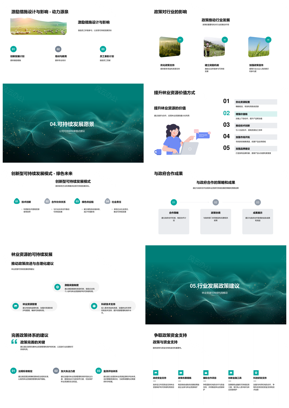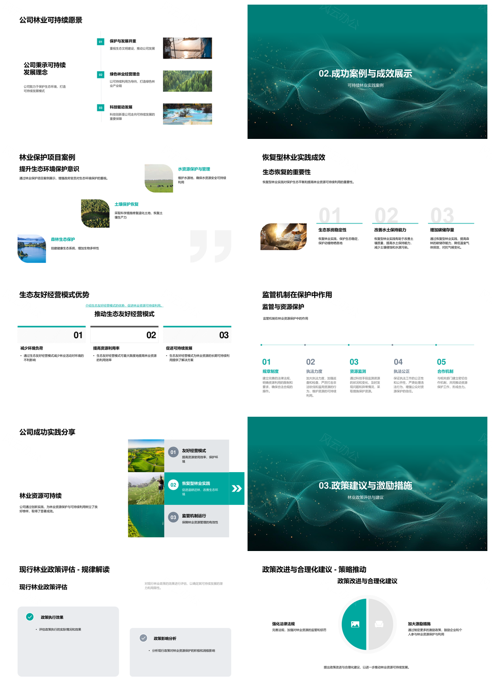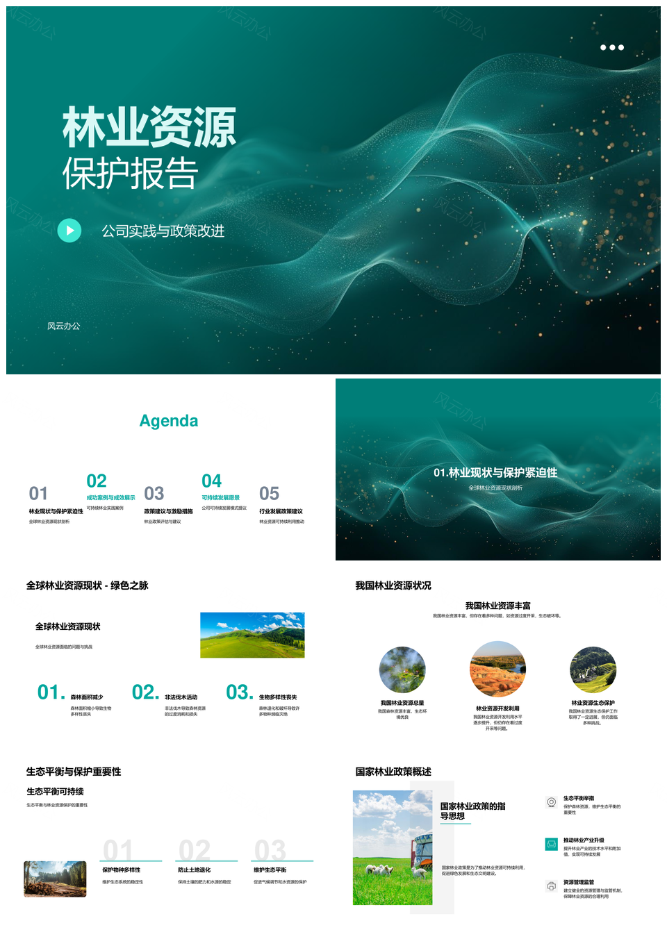 这是一张林业资源保护企业政策全球生态可持续发展监管实践PPT模板,包含林业资源、保护、企业、政策、全球、生态、可持续、发展、监管、实践等主题内容,也可用作林业资源保护企业政策、全球生态可持续发展监管、监管实践林业资源保护、企业政策全球生态、生态可持续发展监管实践、可持续发展监管实践林业资源、林业资源保护政策、全球生态可持续发展、企业政策全球、保护企业政策、可持续发展监管、监管实践林业资源、生态监管实践、林业资源保护、全球生态等PPT场景使用。 风云办公提供的林业资源保护企业政策全球生态可持续发展监管实践PPT模板,下载格式为pptx,一共30页,作品中文字及图均可以修改和编辑,图片更改请在作品中右键图片并更换,文字修改请直接点击文字进行修改。