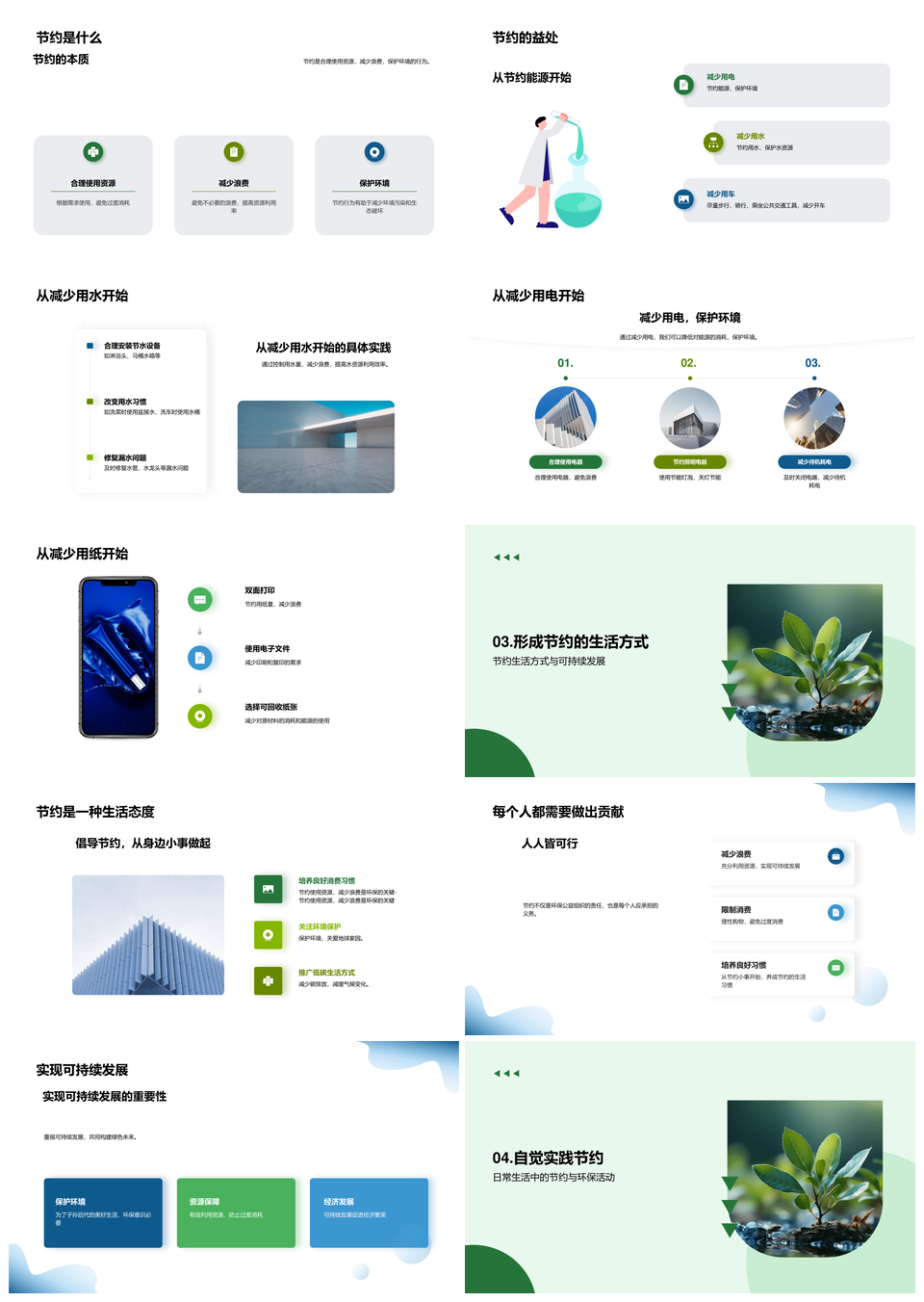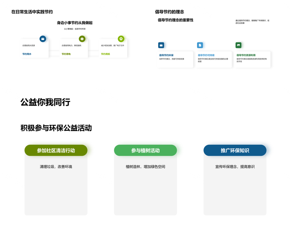这套模板以浅绿,墨绿,草绿构建自然色阶,通过低饱和度渐变塑造视觉呼吸感。极简框架下,素净的留白与几何色块形成有序布局,天然植物纹理仅用于点缀页脚或分隔线,避免过度装饰。模块化设计适配工作汇报,学术分享,提案展示等场景,标题区采用深浅双字体平衡商务与清新调性。图表保留基础线性轮廓,可一键替换为数据组件。轻量化设计确保信息优先传达,无衬线字体与圆角元素兼顾专业性和松弛感,满足现代会议对效率与审美的双重需求。