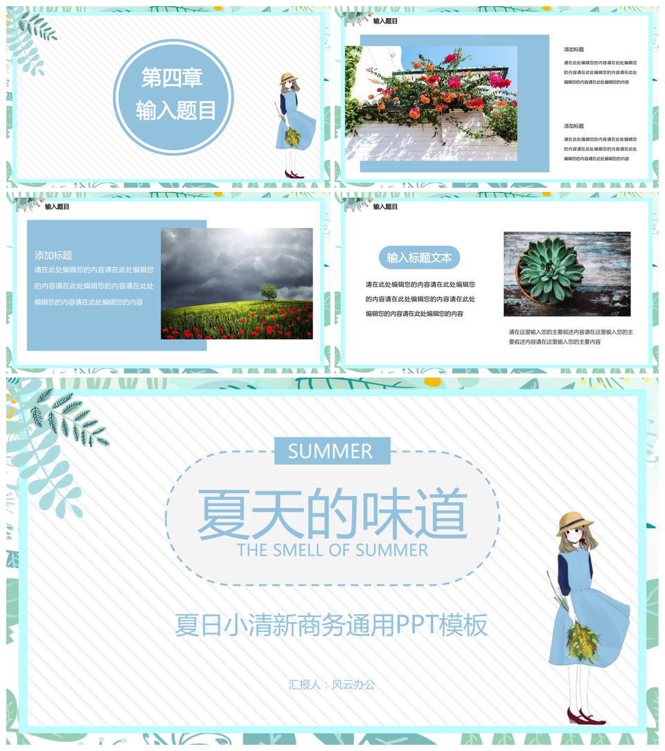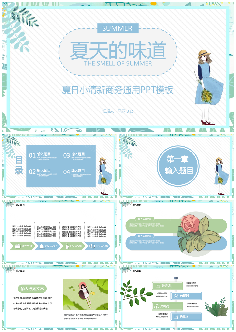 蓝色盛夏光年小清新通用商务计划总结汇报PPT模板