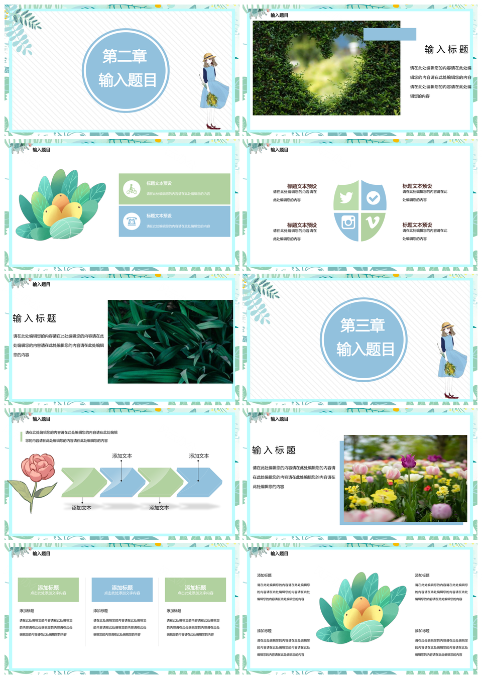 蓝色简约小清新精美花卉商务工作总结计划动态PPT模板