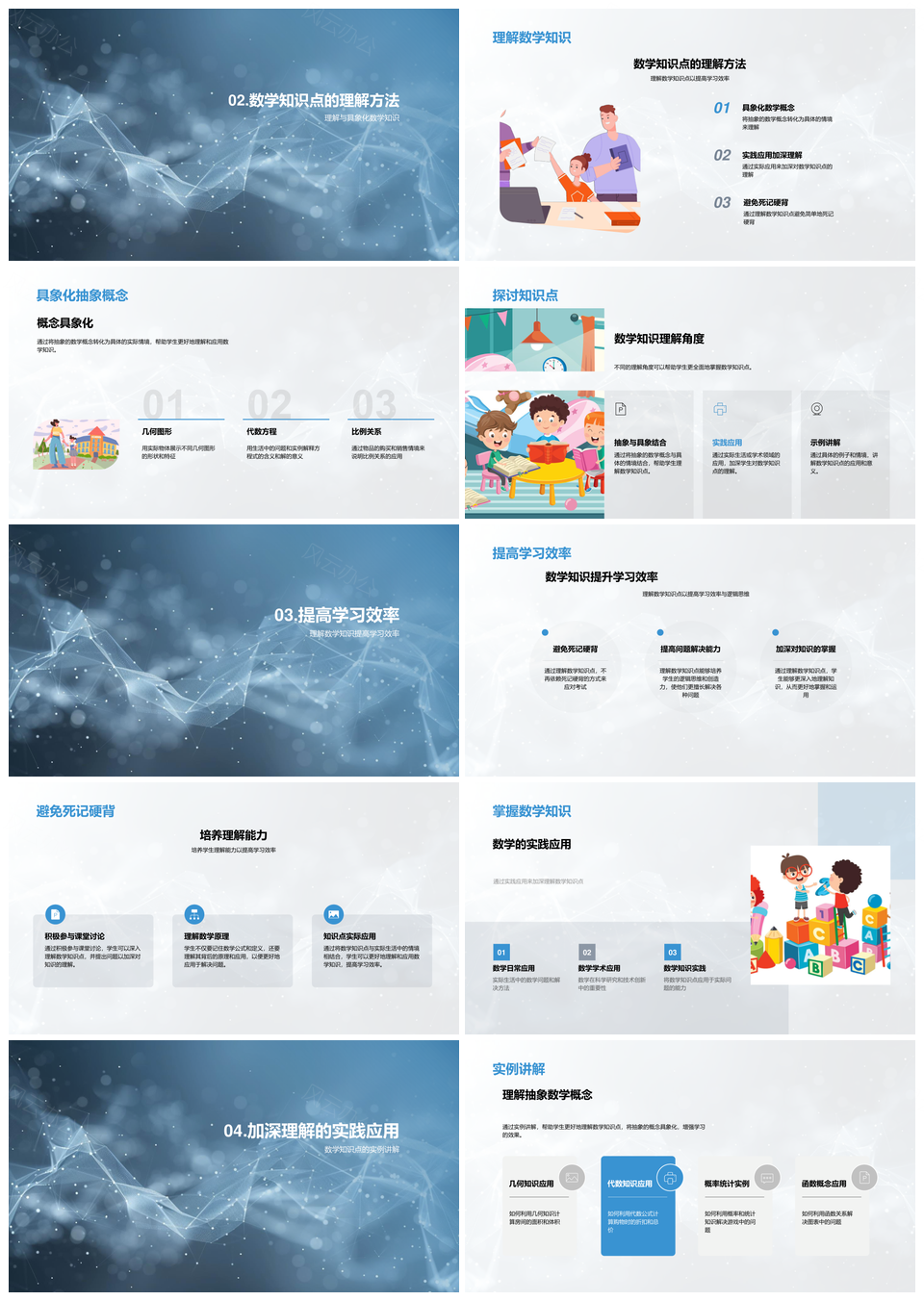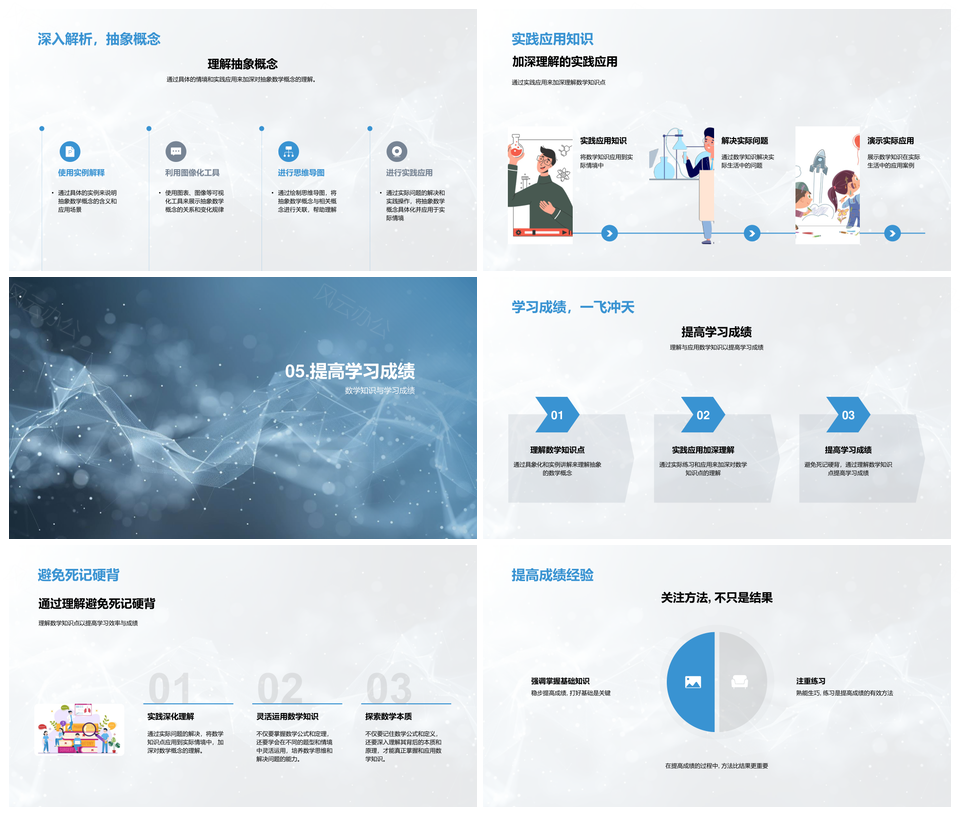 风云办公提供的数学知识高效理解应用提升成绩PPT模板,下载格式为pptx,一共24页,作品中文字及图均可以修改和编辑,图片更改请在作品中右键图片并更换,文字修改请直接点击文字进行修改。