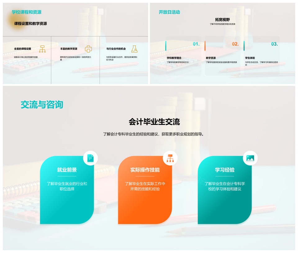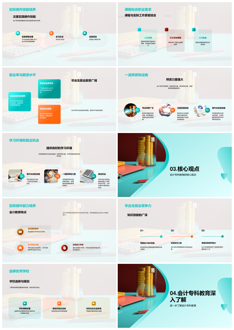会计专科教育课程特色就业薪资优势资源实操技能书PPT模板推荐