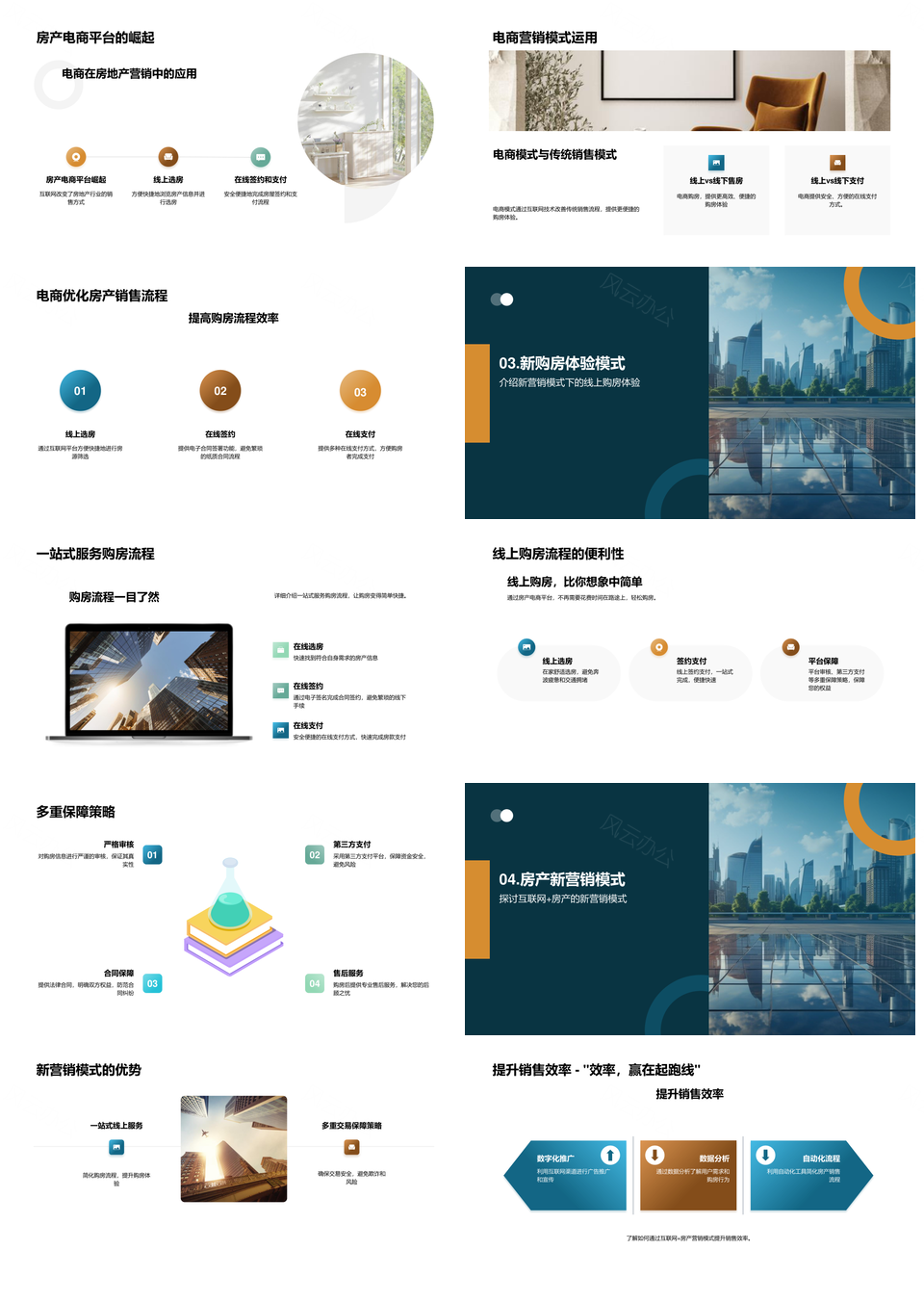 房产电商互联网转型一站式线上购房多重保障PPT模板推荐
