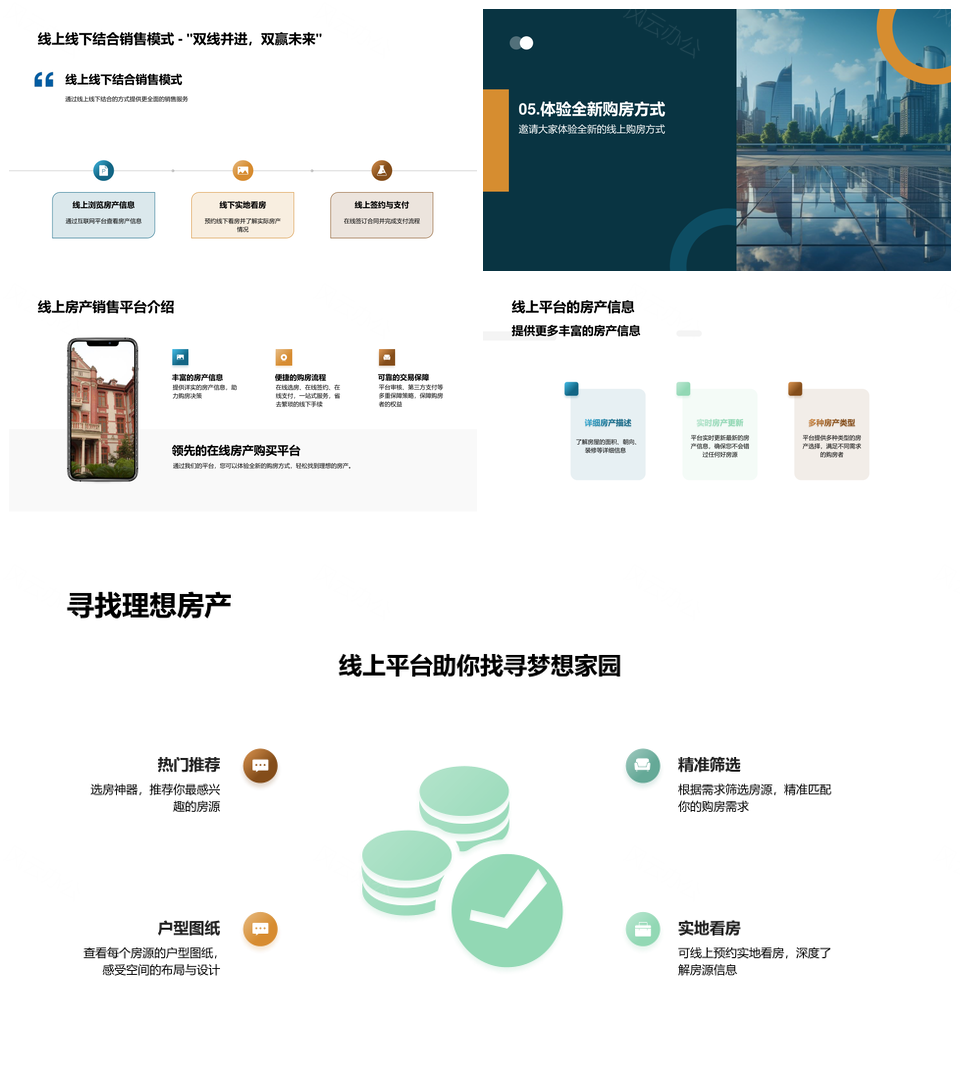 房产电商互联网转型一站式线上购房多重保障PPT模板