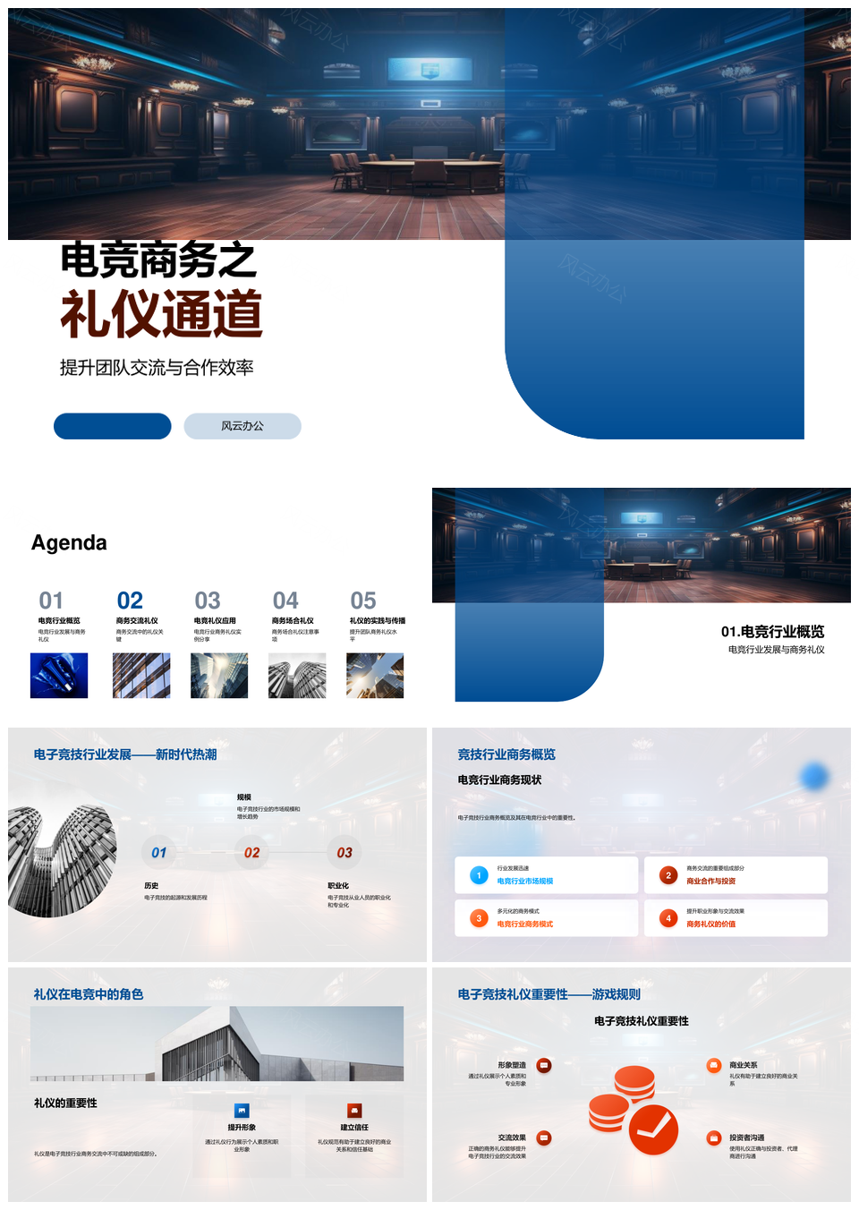 风云办公提供的电竞商务礼仪优化团队合作效率PPT模板,下载格式为pptx,一共33页,作品中文字及图均可以修改和编辑,图片更改请在作品中右键图片并更换,文字修改请直接点击文字进行修改。