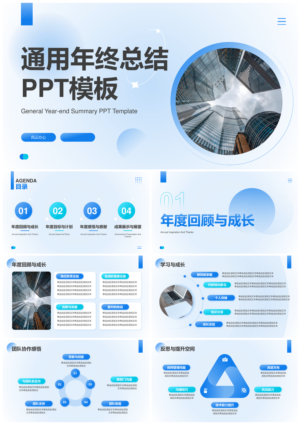 2025蓝色年终总结微粒体简约通用汇报商务PPT模板