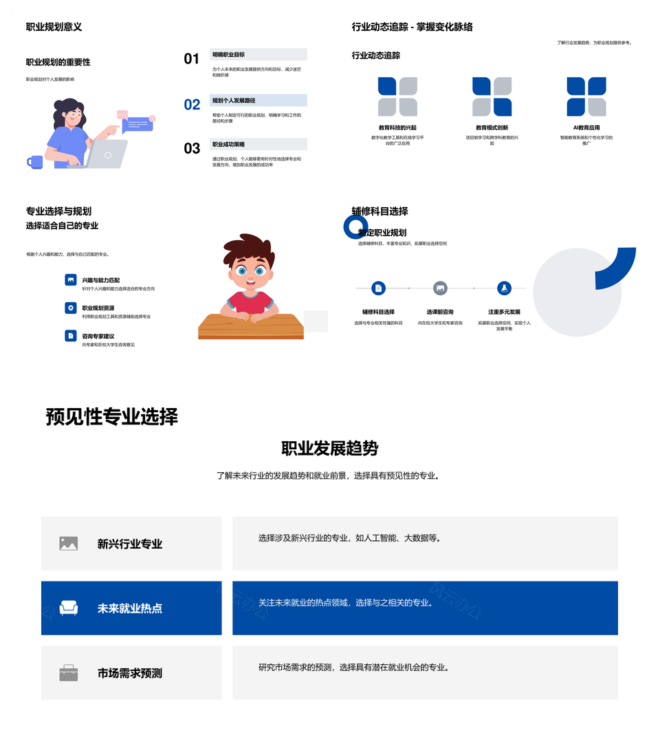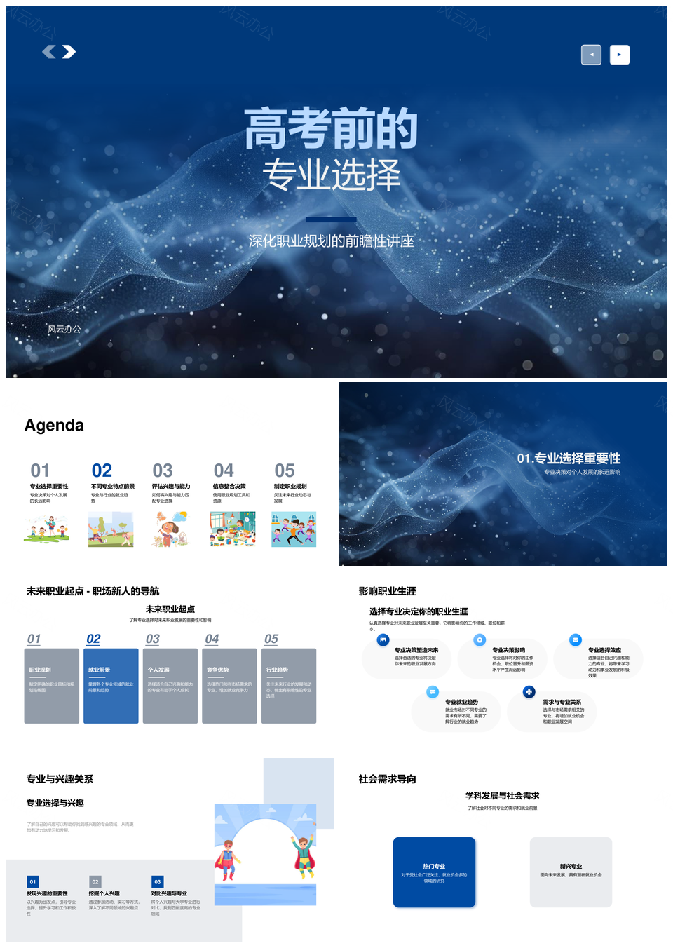 这是一张高考专业选择职业规划兴趣能力就业趋势行业动态PPT模板,包含高考、专业选择、职业规划、兴趣、能力、就业趋势、行业等主题内容,也可用作高考专业选择职业规划、职业规划兴趣能力就业趋势、兴趣能力就业趋势行业动态、高考专业选择兴趣能力、专业选择职业规划就业趋势、职业规划能力就业趋势行业动态、高考专业职业规划兴趣、专业选择兴趣能力行业动态、选择职业规划就业趋势、高考兴趣能力行业动态、职业规划就业趋势行业动态、高考专业选择能力、职业规划兴趣就业趋势、能力就业趋势行业、专业选择职业规划等PPT场景使用。 风云办公提供的高考专业选择职业规划兴趣能力就业趋势行业动态PPT模板,下载格式为pptx,一共33页,作品中文字及图均可以修改和编辑,图片更改请在作品中右键图片并更换,文字修改请直接点击文字进行修改。