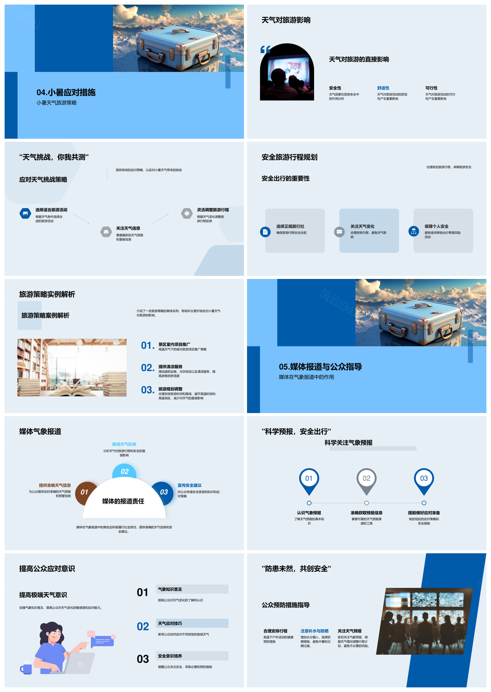 风云办公提供的小暑旅游极端天气应对策略指南PPT模板,下载格式为pptx,一共28页,作品中文字及图均可以修改和编辑,图片更改请在作品中右键图片并更换,文字修改请直接点击文字进行修改。