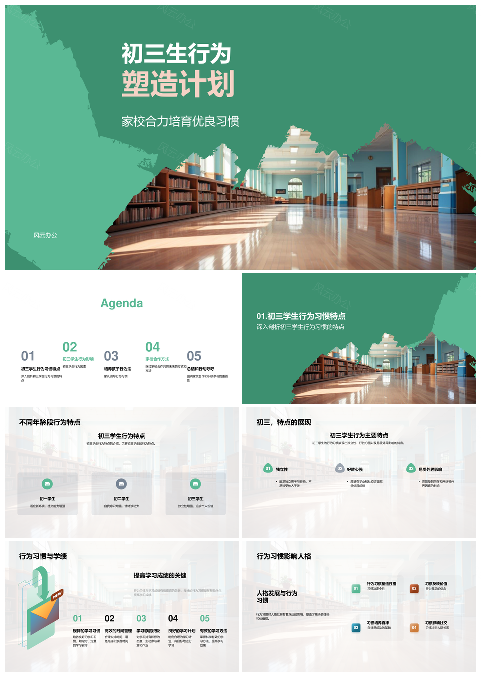 初三生行为塑造家校引导学习压力人格发展PPT模板推荐