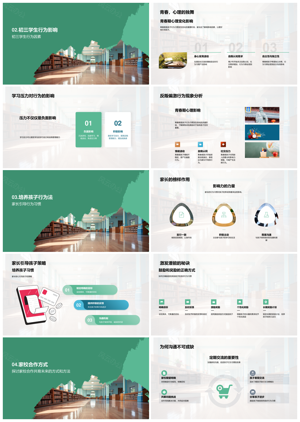初中生教育引导策略学习压力心理时间家校配合PPT模板