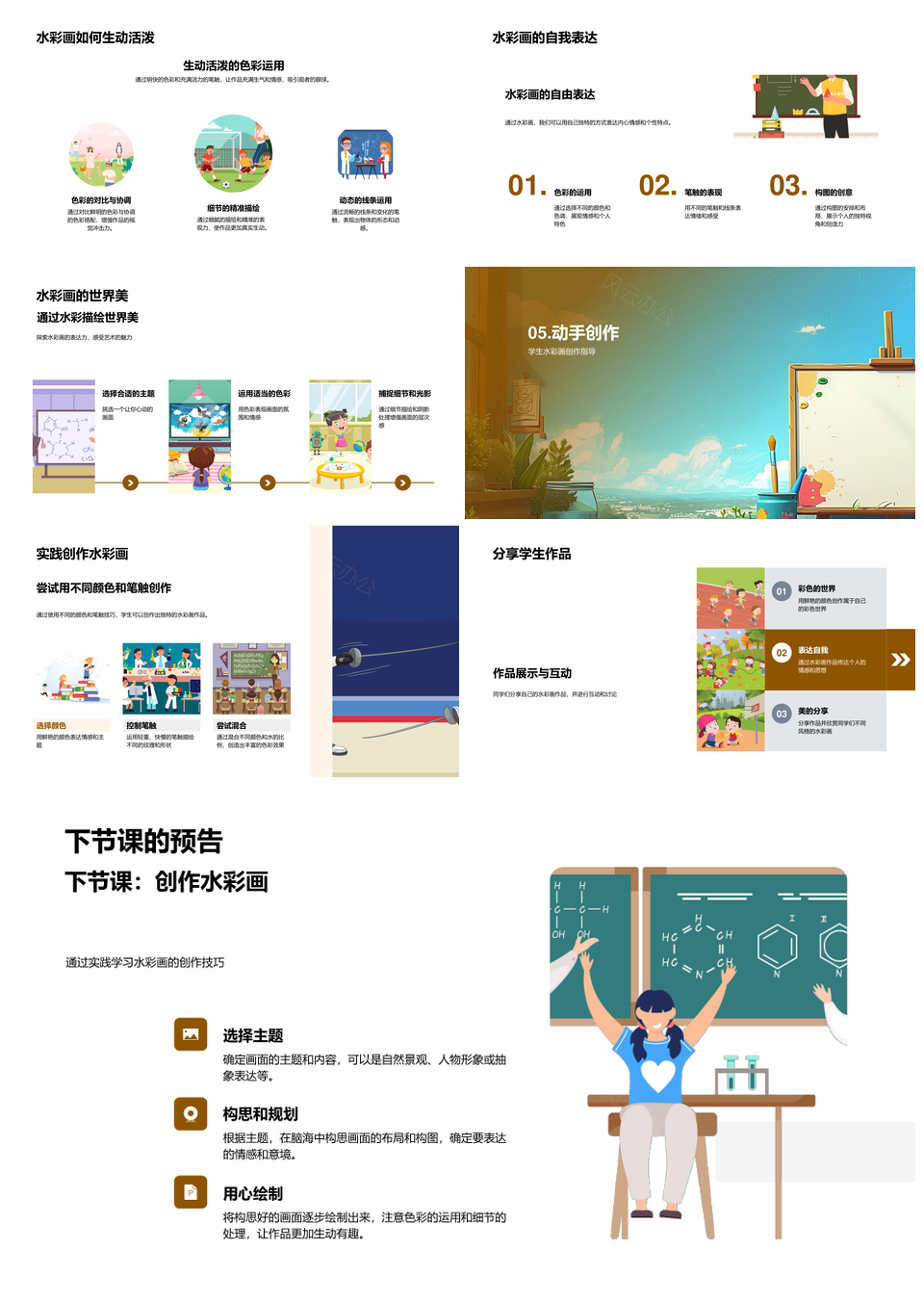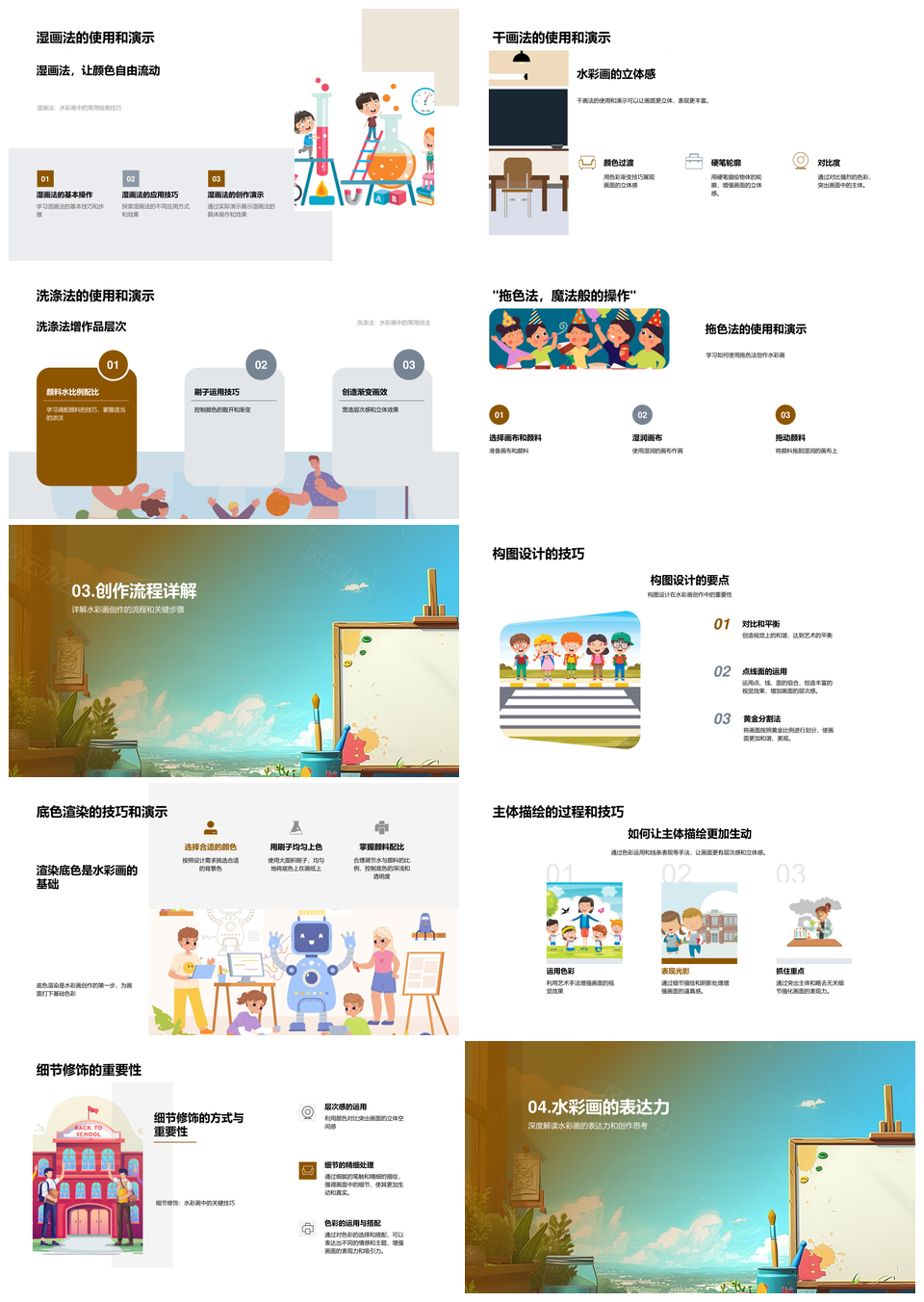 2025小学水彩画湿干洗技法教学实践创作讲座PPT模板推荐