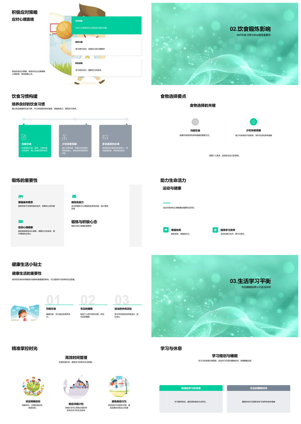 科学饮食锻炼睡眠护青少年健康生活PPT模板