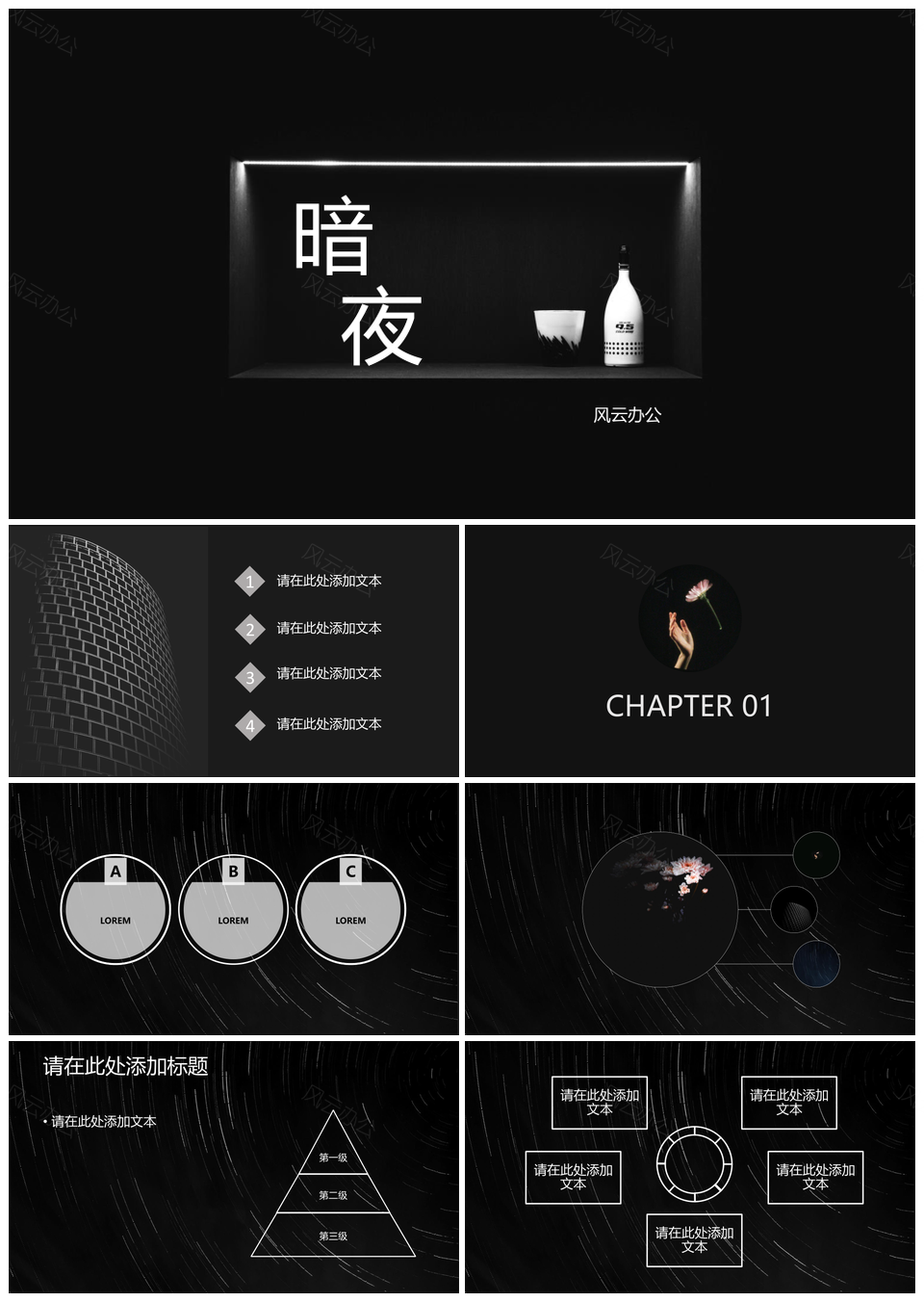 白色暗夜酷黑星空几何简约系列商务通用PPT模板