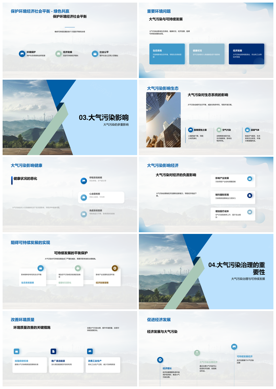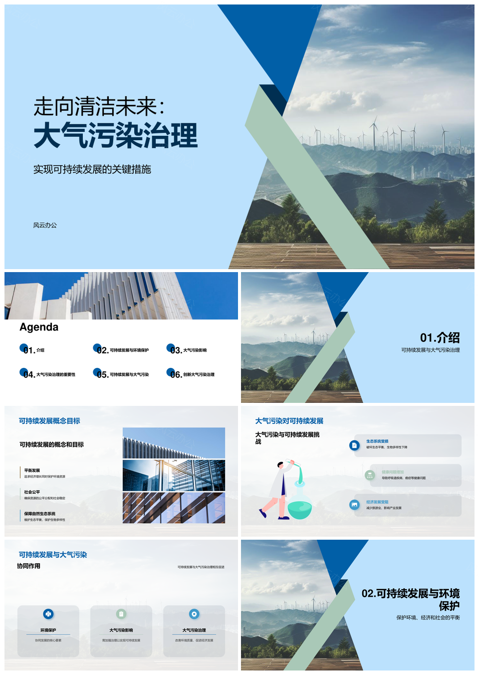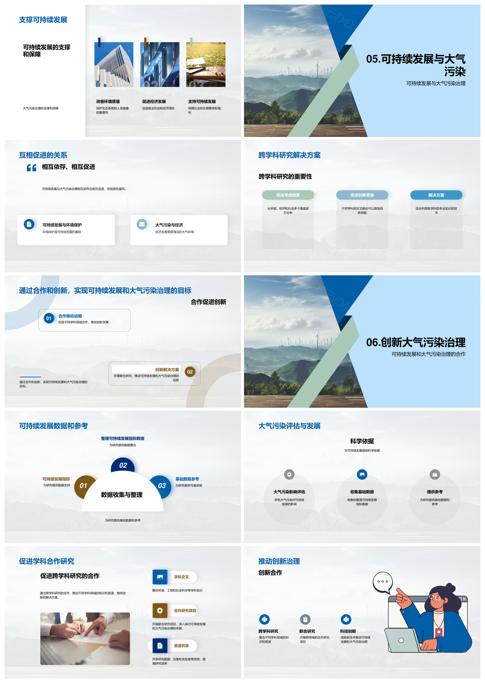 风云办公提供的跨学科共治大气污染促可持续发展PPT模板,下载格式为pptx,一共28页,作品中文字及图均可以修改和编辑,图片更改请在作品中右键图片并更换,文字修改请直接点击文字进行修改。