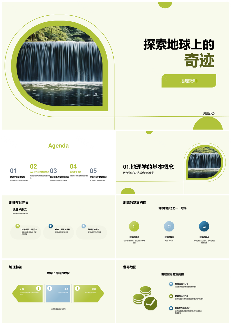 风云办公提供的地球构造运动与气候瀑布地理奇观PPT模板,下载格式为pptx,一共21页,作品中文字及图均可以修改和编辑,图片更改请在作品中右键图片并更换,文字修改请直接点击文字进行修改。