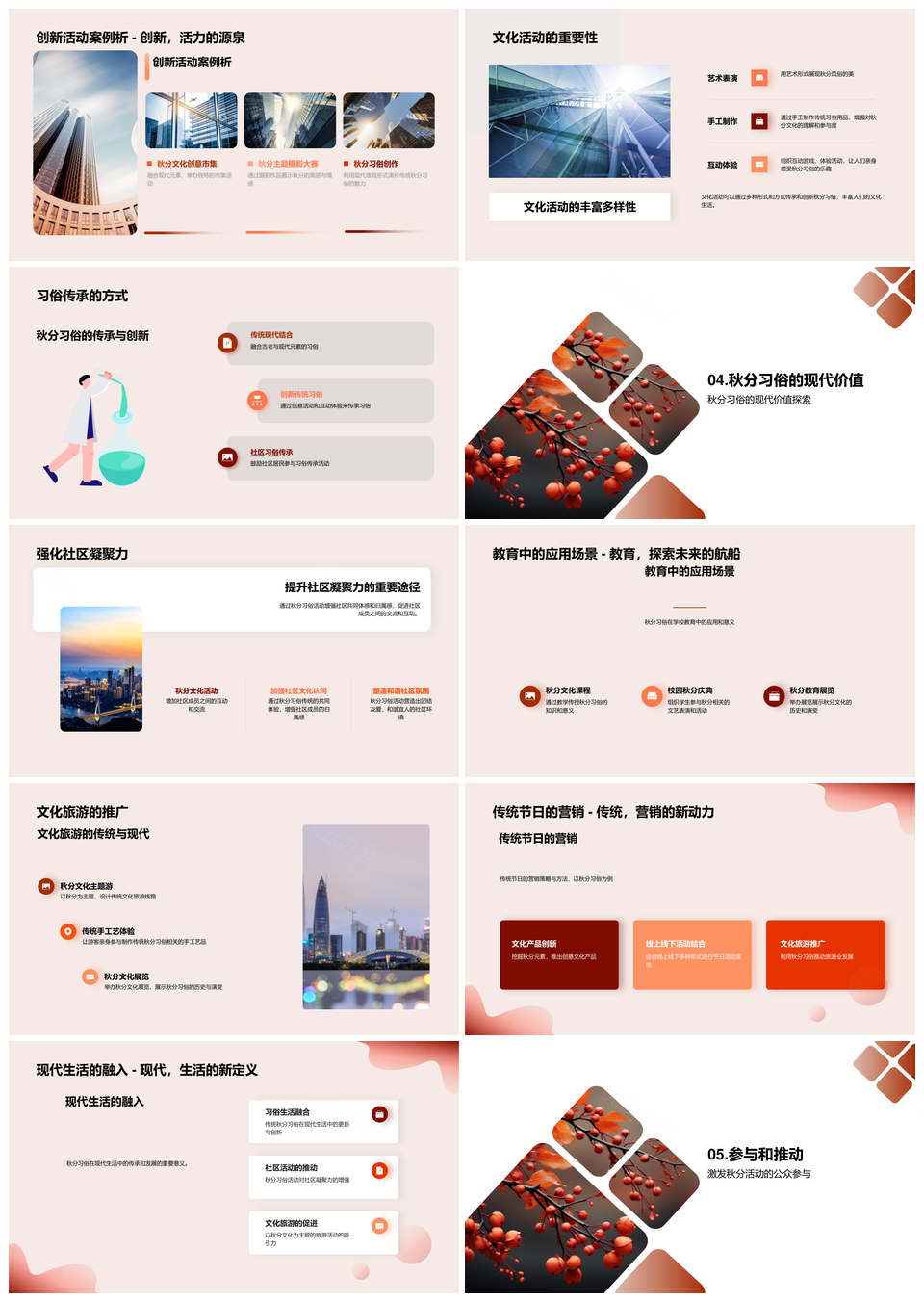 这是一张秋分文化承古融新农艺文旅聚秋叶PPT模板,包含秋分文化、承古融新、农艺文旅、秋叶等主题内容,也可用作秋分文化承古融新、承古融新农艺文旅、农艺文旅聚秋叶、文化承古融新农艺、融新农艺文旅聚秋叶、秋分农艺文旅聚秋叶、承古农艺文旅聚秋叶、秋分文化农艺聚秋叶、融新文旅聚秋叶、承古融新文旅聚秋叶、文化农艺文旅聚秋叶、秋分承古融新农艺、承古融新聚秋叶、秋分融新农艺文旅、文化融新农艺聚秋叶等PPT场景使用。