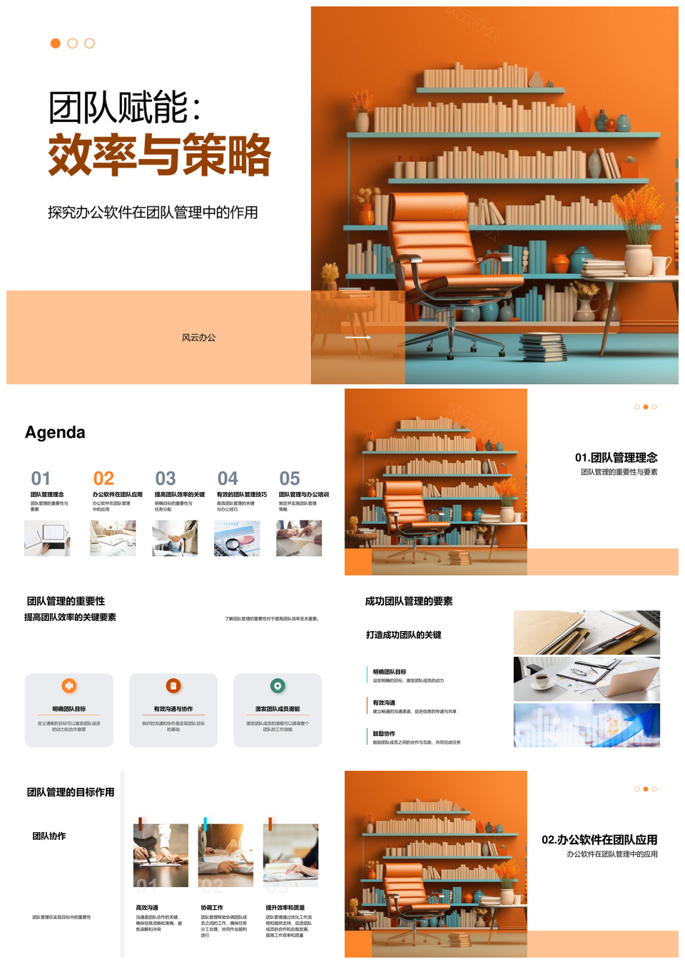 风云办公提供的团队赋能效率策略办公软件任务管理PPT模板,下载格式为pptx,一共23页,作品中文字及图均可以修改和编辑,图片更改请在作品中右键图片并更换,文字修改请直接点击文字进行修改。