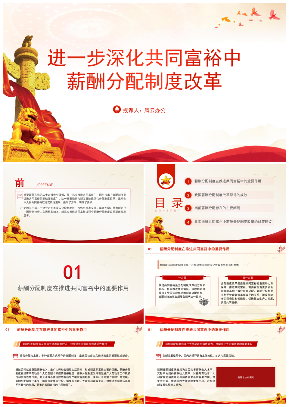 这是一张深化共同富裕薪酬分配制度改革党课PPT模板,包含共同富裕、薪酬分配制度、改革、党课等主题内容,也可用作深化、共同富裕、薪酬、分配、制度、改革、党课