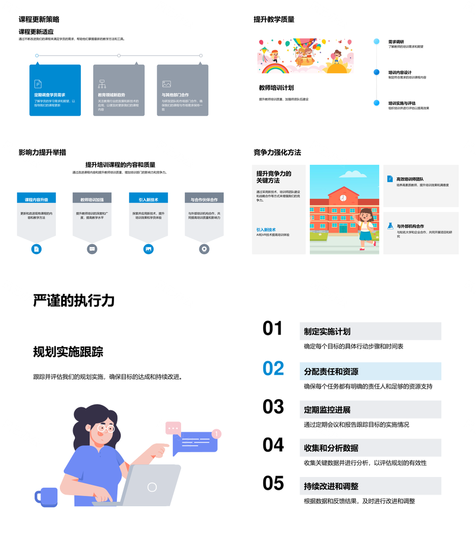 风云办公提供的培训部年度总结战略优化目标课程更新PPT模板,下载格式为pptx,一共33页,作品中文字及图均可以修改和编辑,图片更改请在作品中右键图片并更换,文字修改请直接点击文字进行修改。