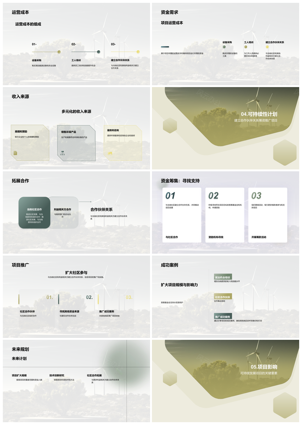 这是一张环保公益风力涡轮机筹资融资计划书潜在影响PPT模板,包含环保、公益、风力、涡轮机、筹资、融资、计划书、潜在影响等主题内容,也可用作环保公益筹资融资、公益风力涡轮机筹资融资、风力涡轮机筹资融资计划书、筹资融资计划书潜在影响、环保公益风力涡轮机、风力涡轮机筹资融资、公益风力涡轮机筹资、筹资融资计划书、融资计划书潜在影响、环保公益融资计划书、环保公益、风力涡轮机、筹资融资、融资计划书、计划书潜在影响等PPT场景使用。 风云办公提供的环保公益风力涡轮机筹资融资计划书潜在影响PPT模板,下载格式为pptx,一共39页,作品中文字及图均可以修改和编辑,图片更改请在作品中右键图片并更换,文字修改请直接点击文字进行修改。