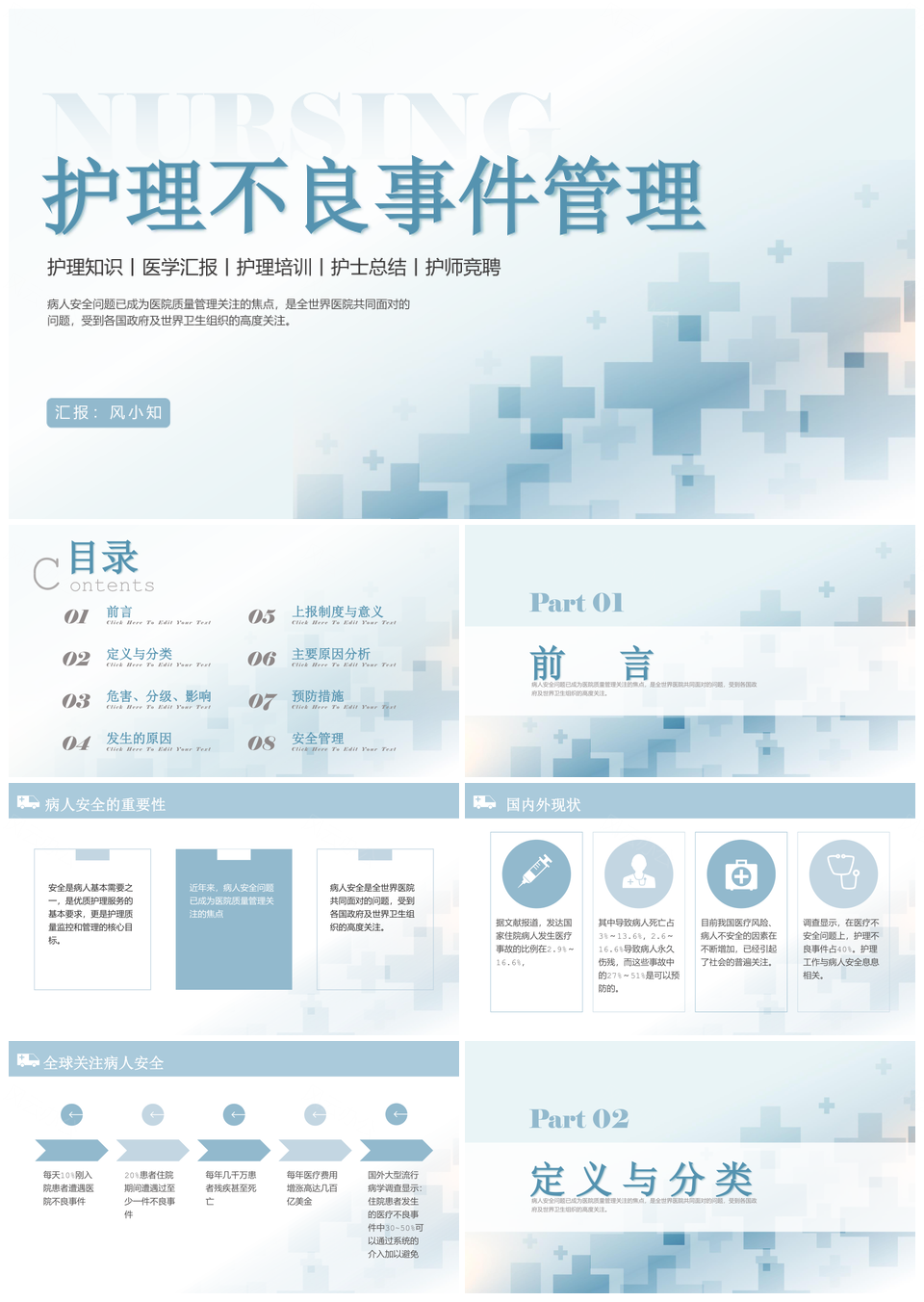 护理不良事件管理医学培训工作总结分析防范PPT模板推荐