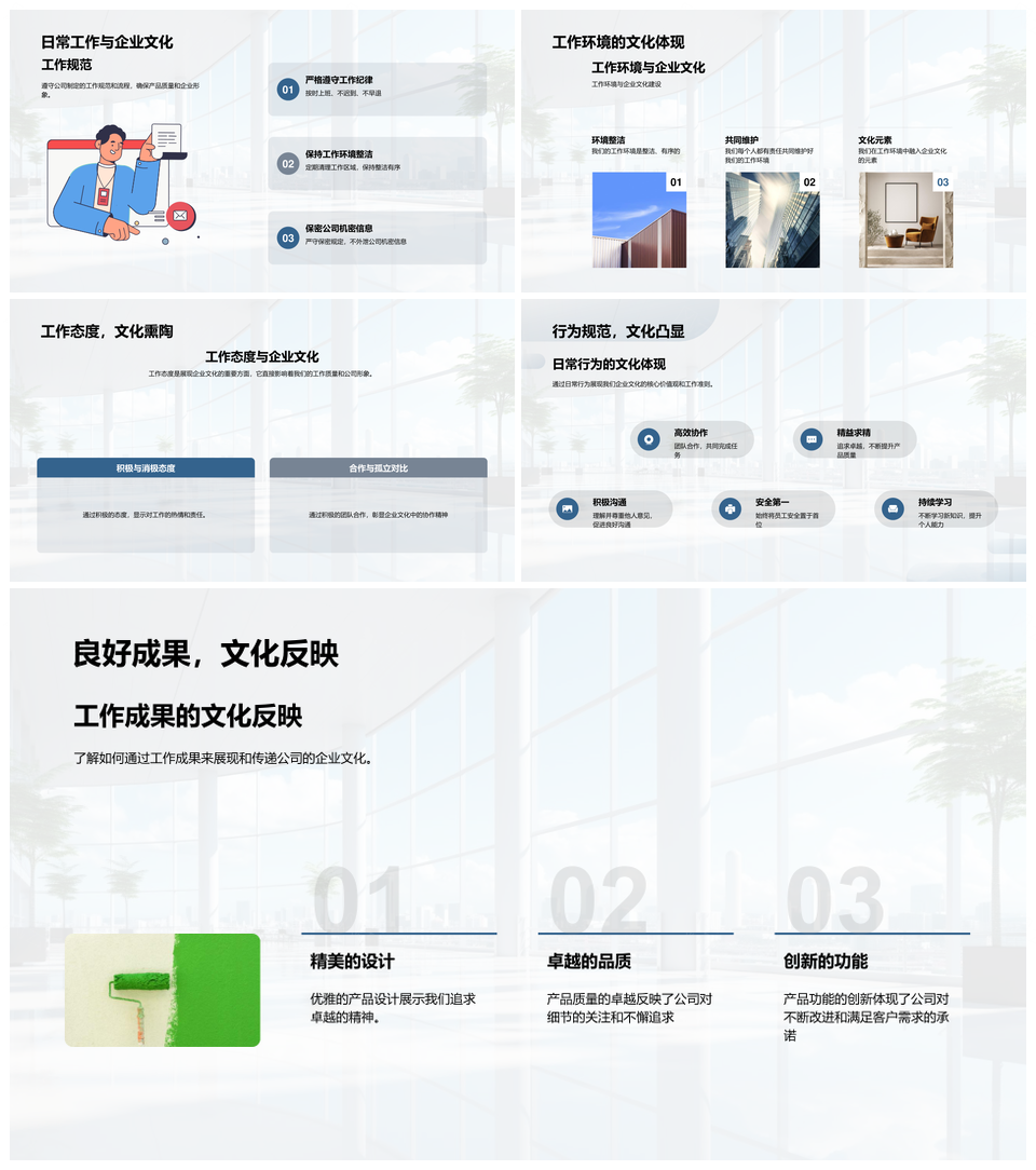 这是一张地产家居企业文化凝聚生产团队赋能服务培训PPT模板,包含地产家居、企业、文化、凝聚、生产团队、赋能、服务、培训等主题内容,也可用作地产家居企业文化凝聚、文化凝聚生产团队赋能、生产团队赋能服务培训、地产家居企业文化、凝聚生产团队赋能、团队赋能服务培训、地产家居企业、家居企业文化、企业文化凝聚、凝聚生产团队、生产团队赋能、赋能服务培训、地产家居、家居企业、企业文化、文化凝聚、凝聚生产、生产团队、团队赋能、赋能服务、服务培训等PPT场景使用。 风云办公提供的地产家居企业文化凝聚生产团队赋能服务培训PPT模板,下载格式为pptx,一共33页,作品中文字及图均可以修改和编辑,图片更改请在作品中右键图片并更换,文字修改请直接点击文字进行修改。