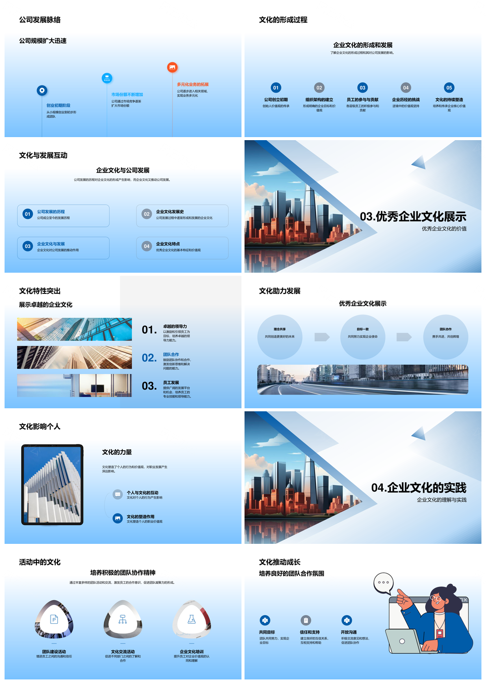 房地产企业文化发展历程核心愿景协作创新筑摩天PPT模板