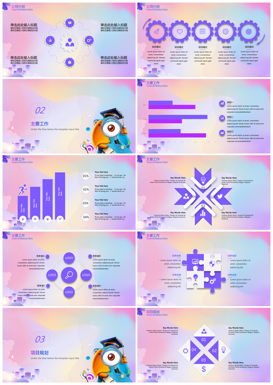 彩色渐变简约风毕业答辩开题报告PPT模板