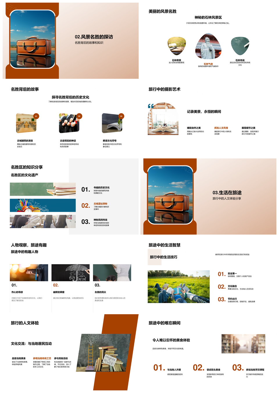 这是一张师生环游知识名胜图集PPT模板,包含师生、环游、知识、名胜、图集等主题内容,也可用作师生环游知识名胜图集、师生环游知识名胜、师生环游名胜图集、环游知识名胜图集、知识名胜图集、师生环游知识、师生环游名胜、师生知识名胜、环游知识名胜、环游名胜图集、知识名胜图、名胜图集、师生环游、师生知识、知识名胜等PPT场景使用。 风云办公提供的师生环游知识名胜图集PPT模板,下载格式为pptx,一共28页,作品中文字及图均可以修改和编辑,图片更改请在作品中右键图片并更换,文字修改请直接点击文字进行修改。