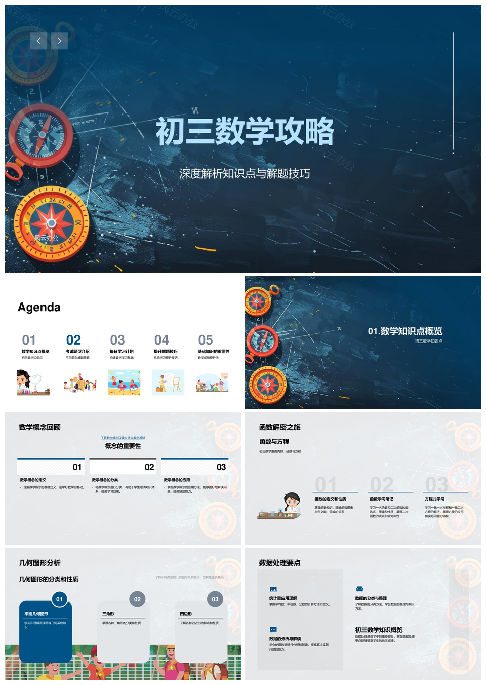 2025初三数学代数几何函数统计实数不等式解题技巧PPT模板
