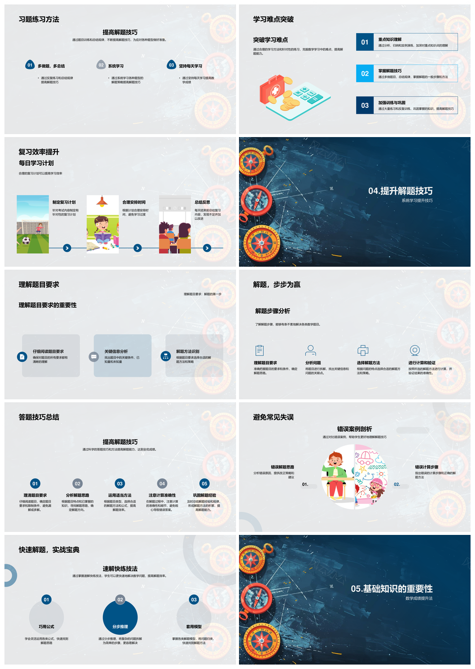 初三复习知识点解题技巧题型方法心理应用PPT模板