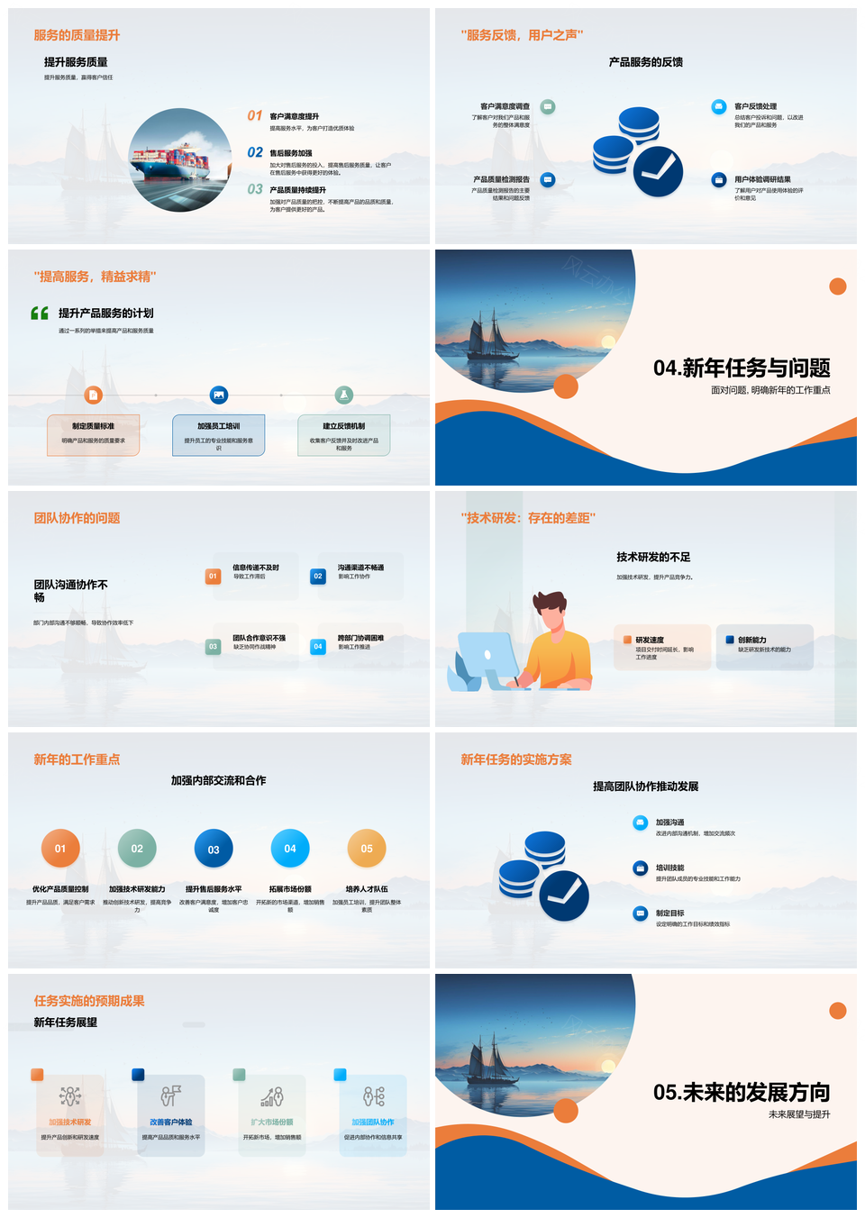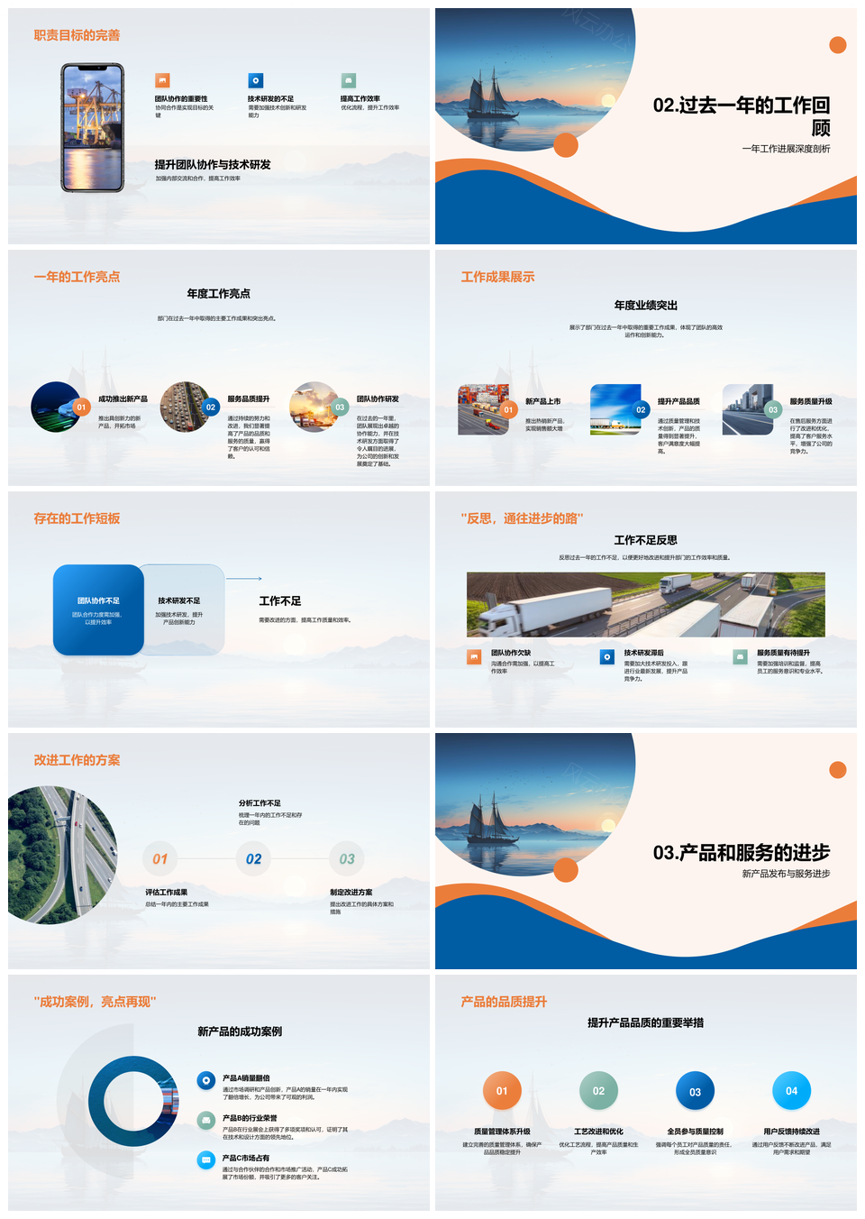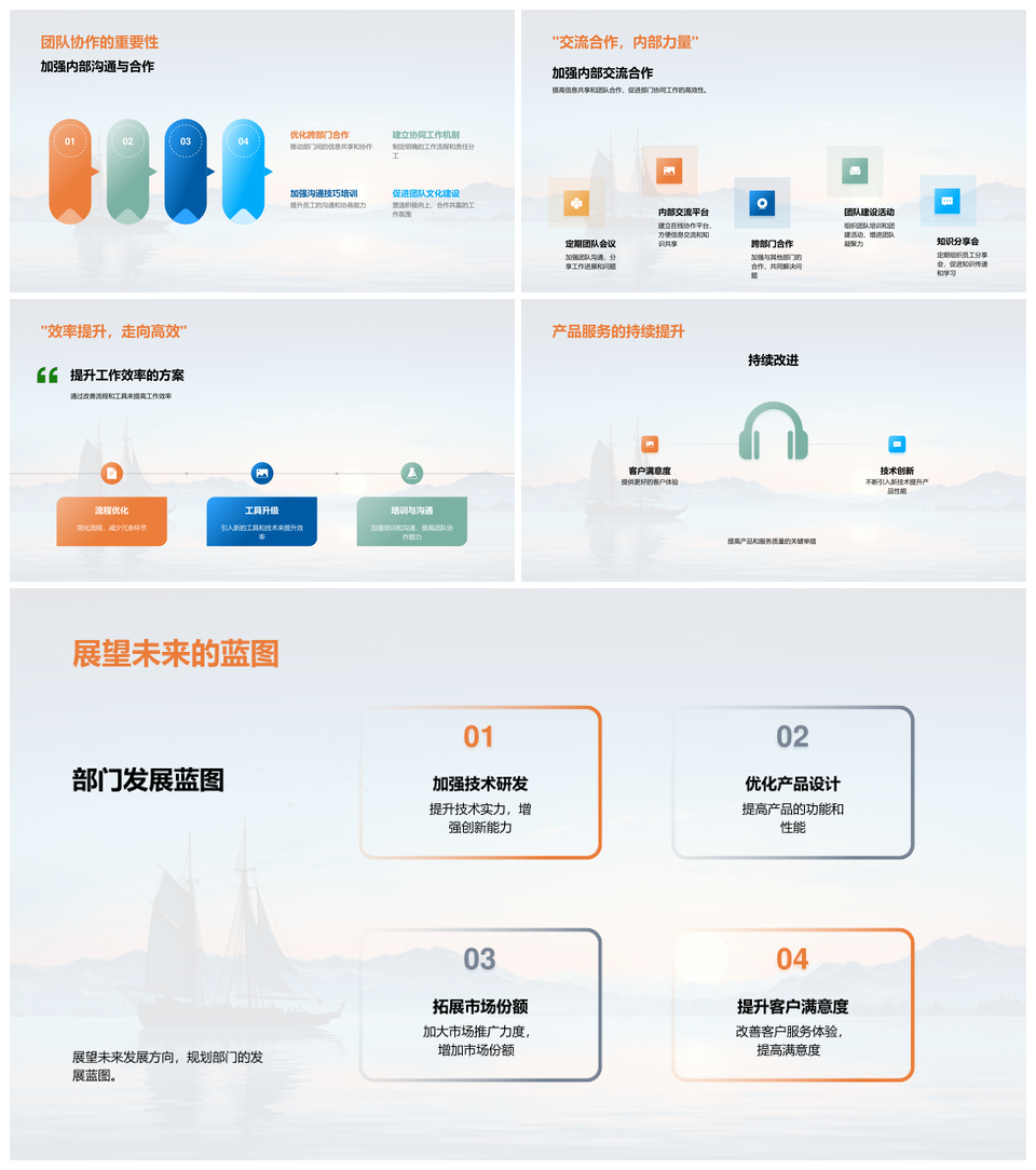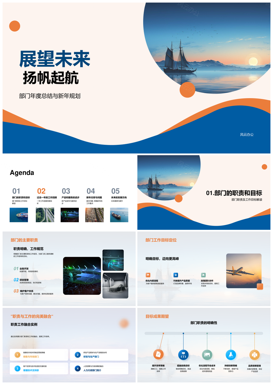部门年度总结规划成果不足新产品服务扬帆启航PPT模板推荐