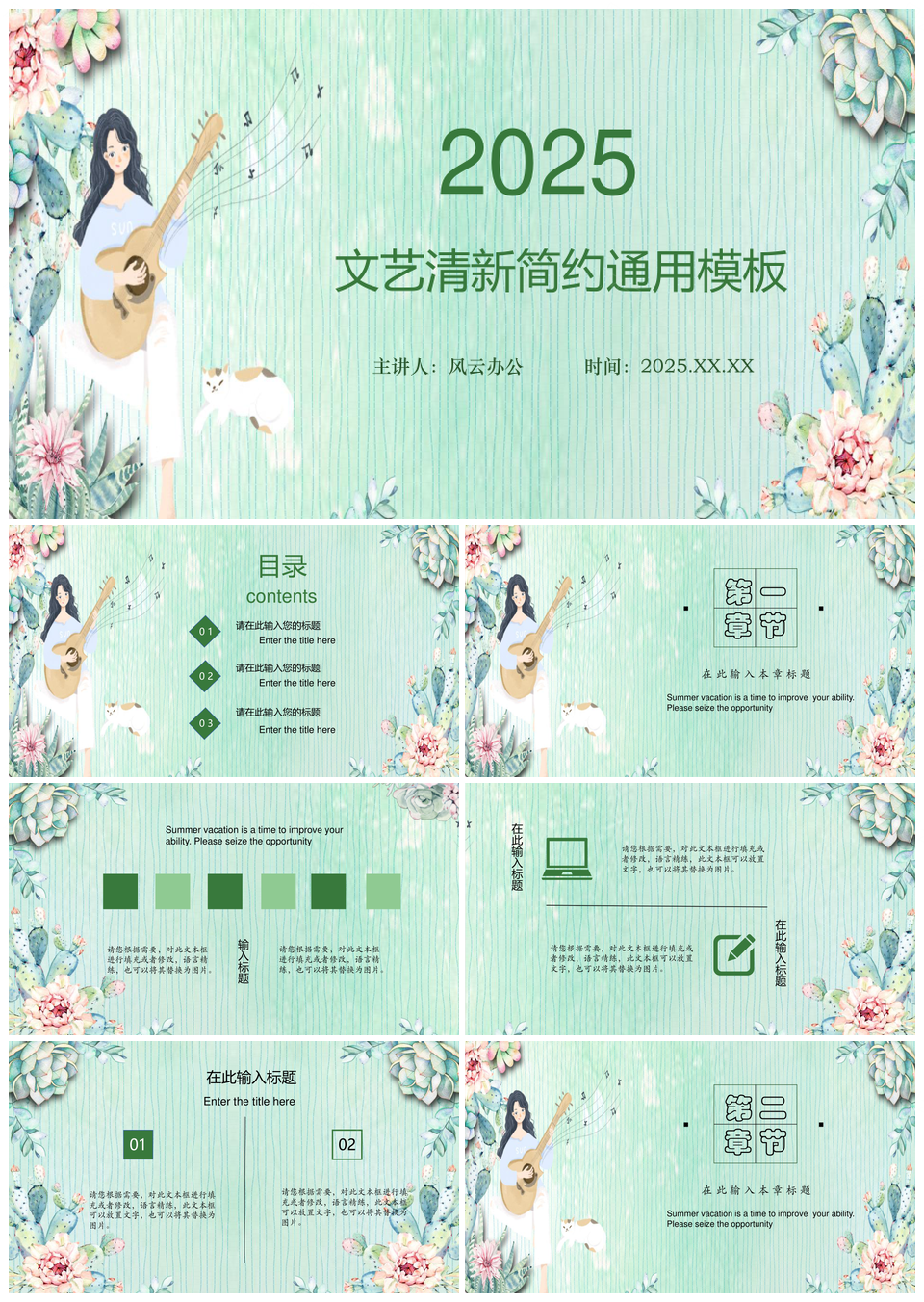 2025可编辑暖色调文艺清新通用PPT模板推荐