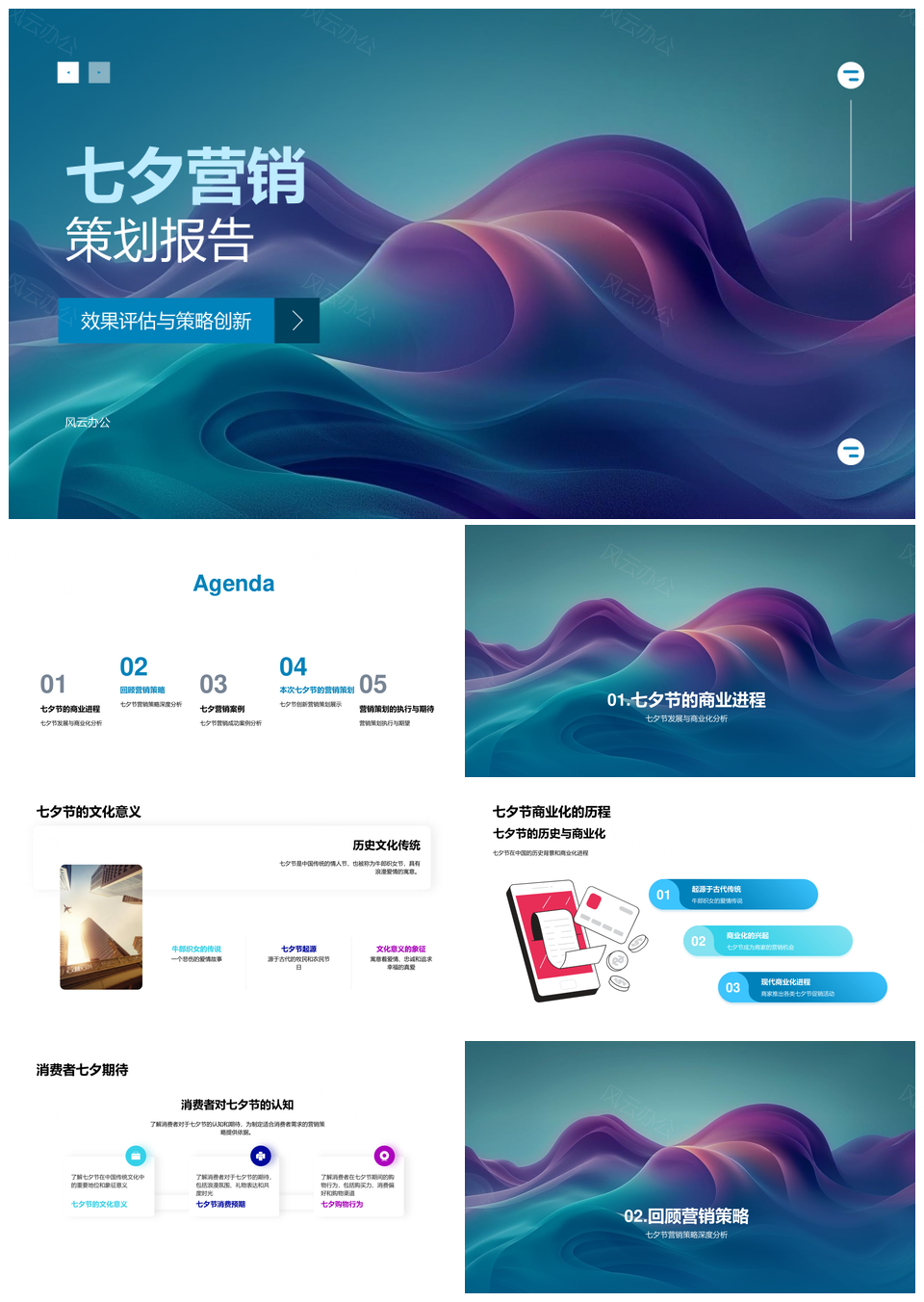 风云办公提供的七夕营销策略创新趋势评估案例分析PPT模板,下载格式为pptx,一共23页,作品中文字及图均可以修改和编辑,图片更改请在作品中右键图片并更换,文字修改请直接点击文字进行修改。