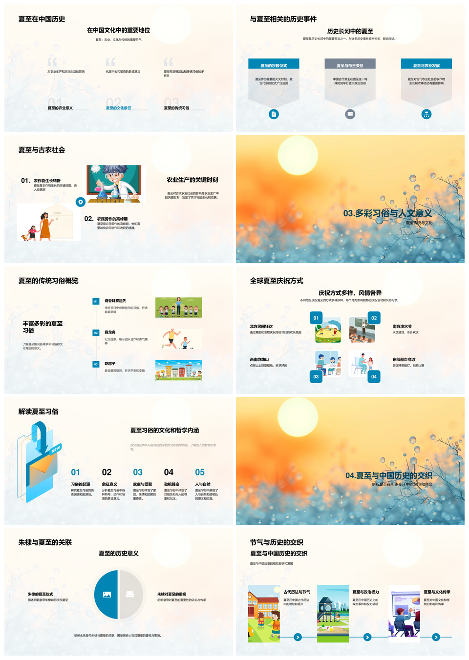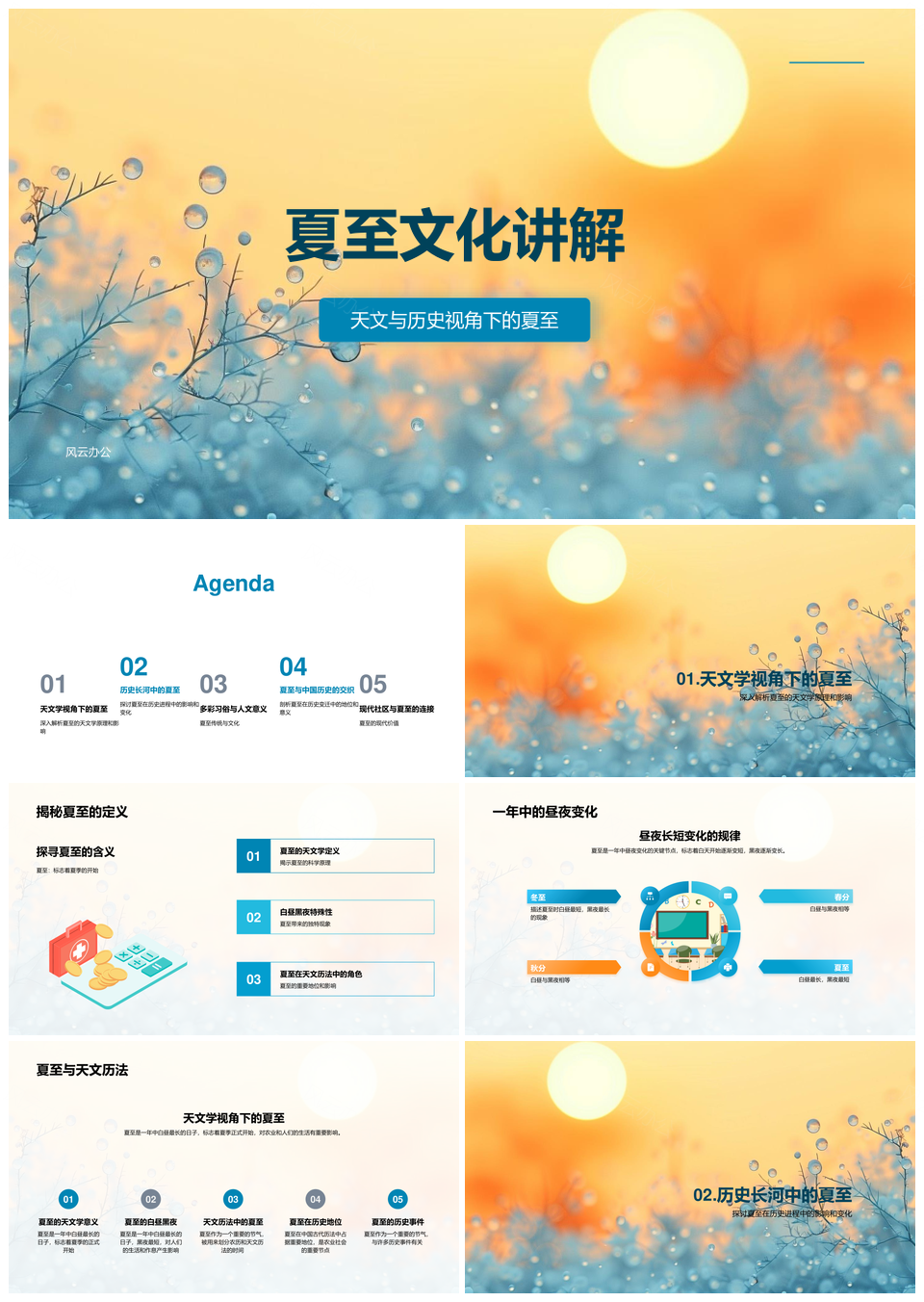 风云办公提供的夏至天文学历史节气与农业社会PPT模板,下载格式为pptx,一共23页,作品中文字及图均可以修改和编辑,图片更改请在作品中右键图片并更换,文字修改请直接点击文字进行修改。