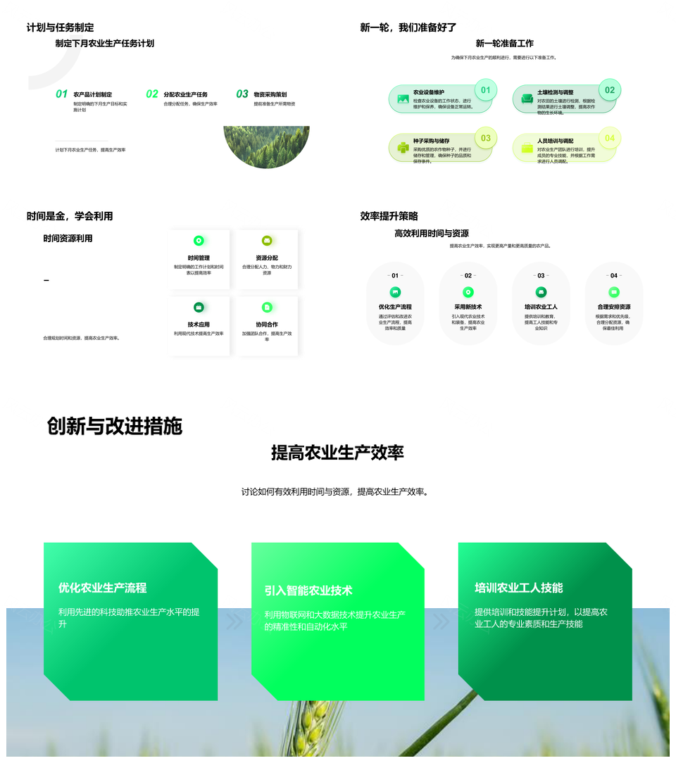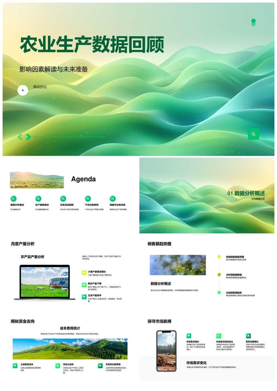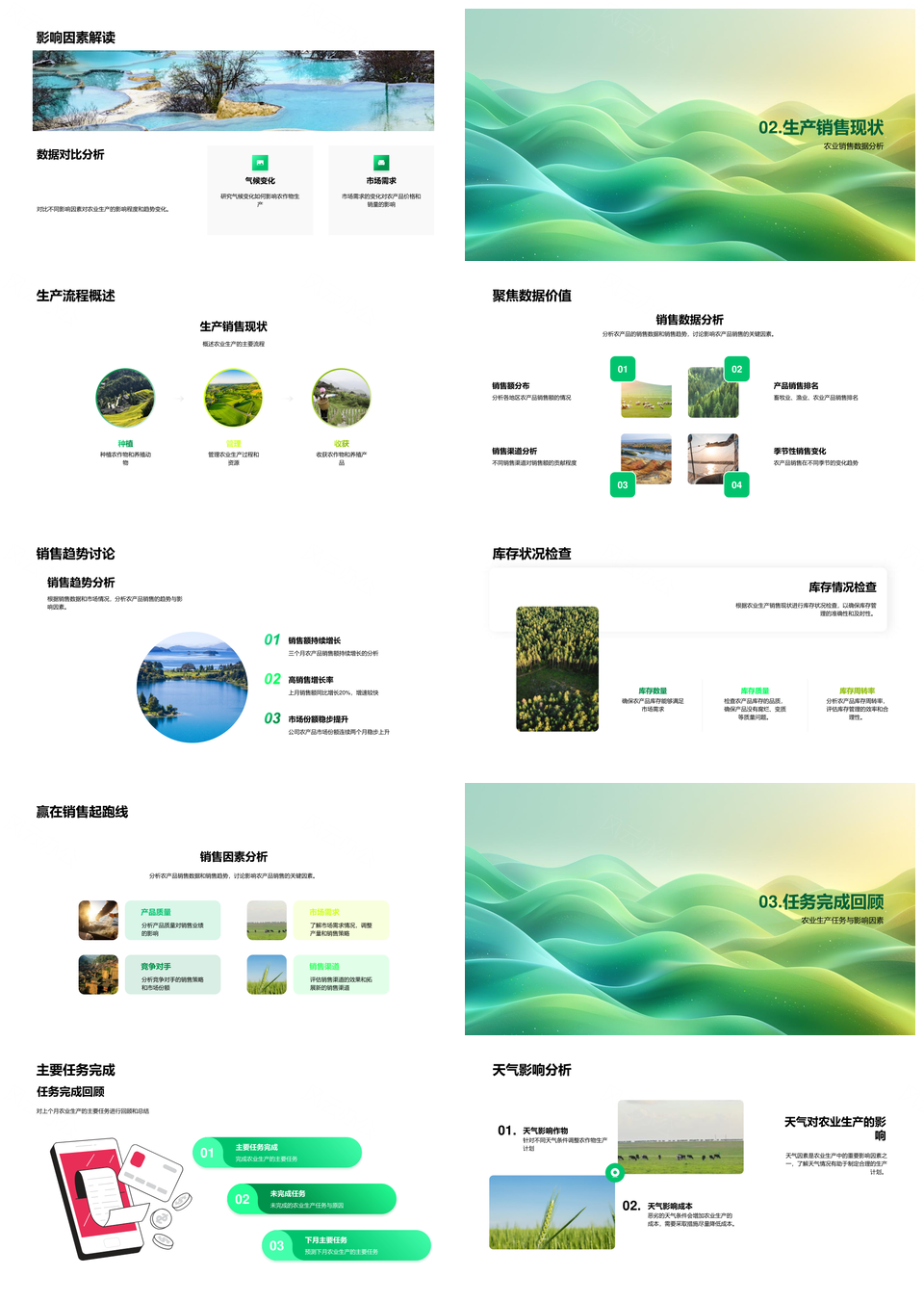 这是一张农业生产销售数据分析流程库存趋势任务需求PPT模板,包含农业生产、销售数据分析、流程、库存、趋势、任务、需求等主题内容,也可用作农业生产销售数据分析流程库存趋势、农业生产销售数据分析流程任务需求、农业生产销售数据库存趋势任务需求、销售数据分析流程库存趋势任务需求、农业生产销售数据分析流程、农业生产销售数据库存趋势、农业生产销售数据任务需求、销售数据分析流程库存趋势、销售数据分析流程任务需求、销售数据库存趋势任务需求、分析流程库存趋势任务需求、农业生产销售数据、销售数据分析流程、销售数据库存趋势、库存趋势任务需求等PPT场景使用。 风云办公提供的农业生产销售数据分析流程库存趋势任务需求PPT模板,下载格式为pptx,一共33页,作品中文字及图均可以修改和编辑,图片更改请在作品中右键图片并更换,文字修改请直接点击文字进行修改。