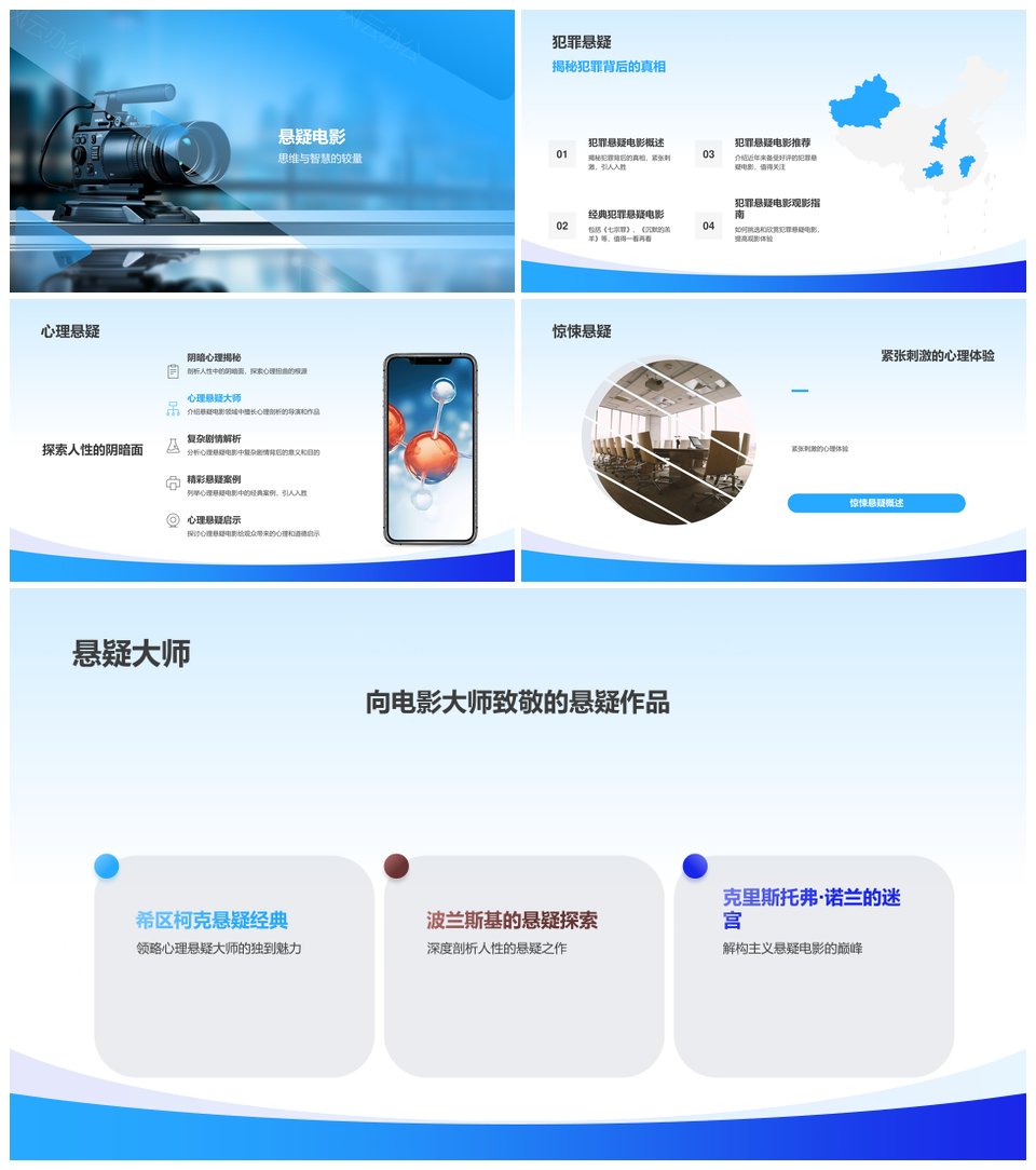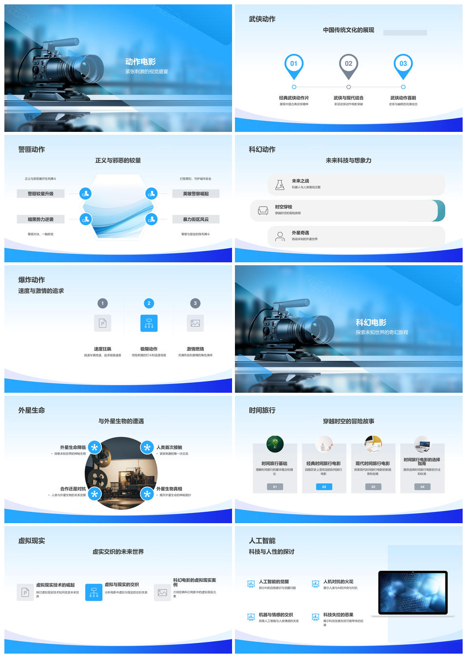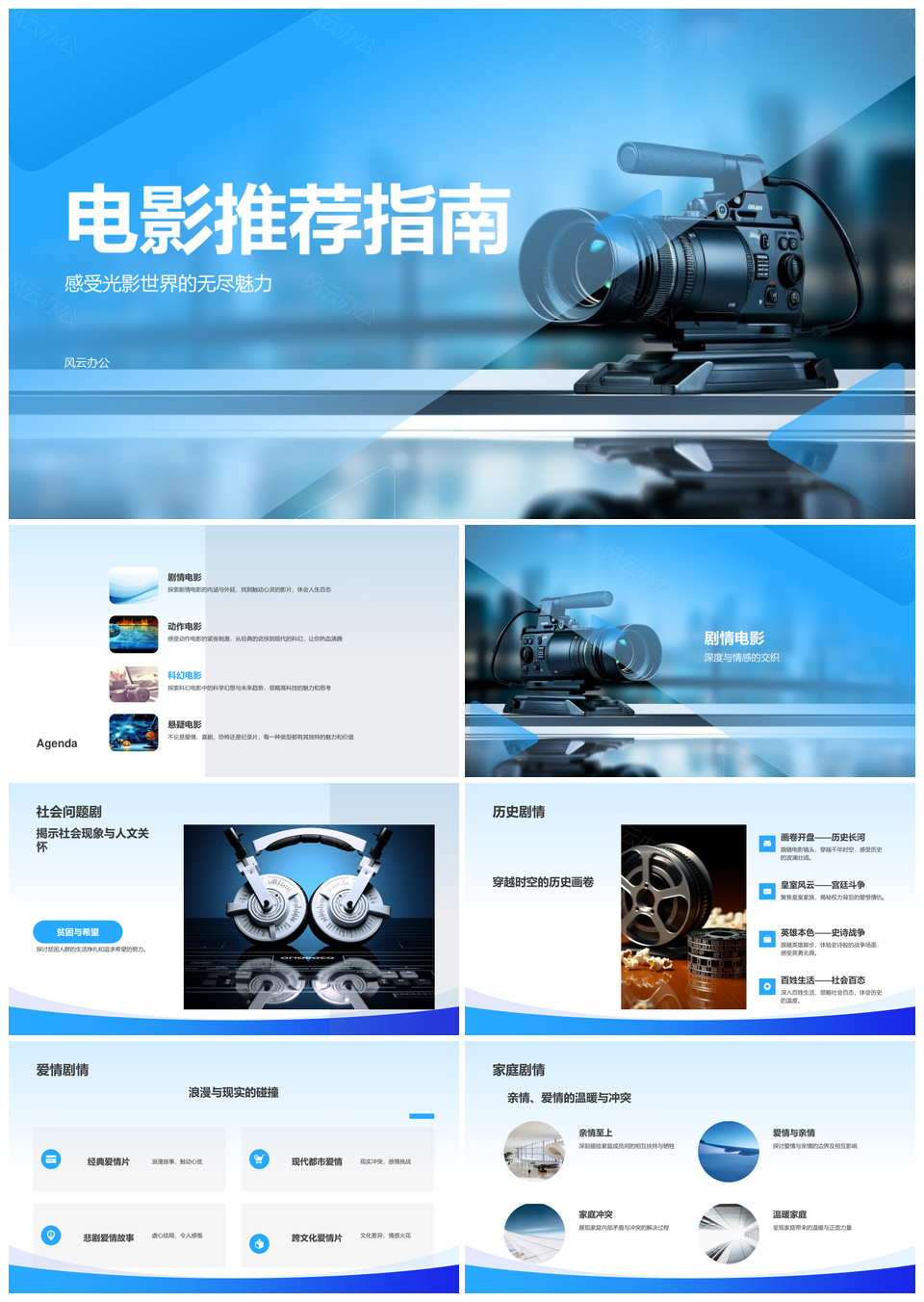 2025蓝色影视传媒微电影动态通用PPT模板