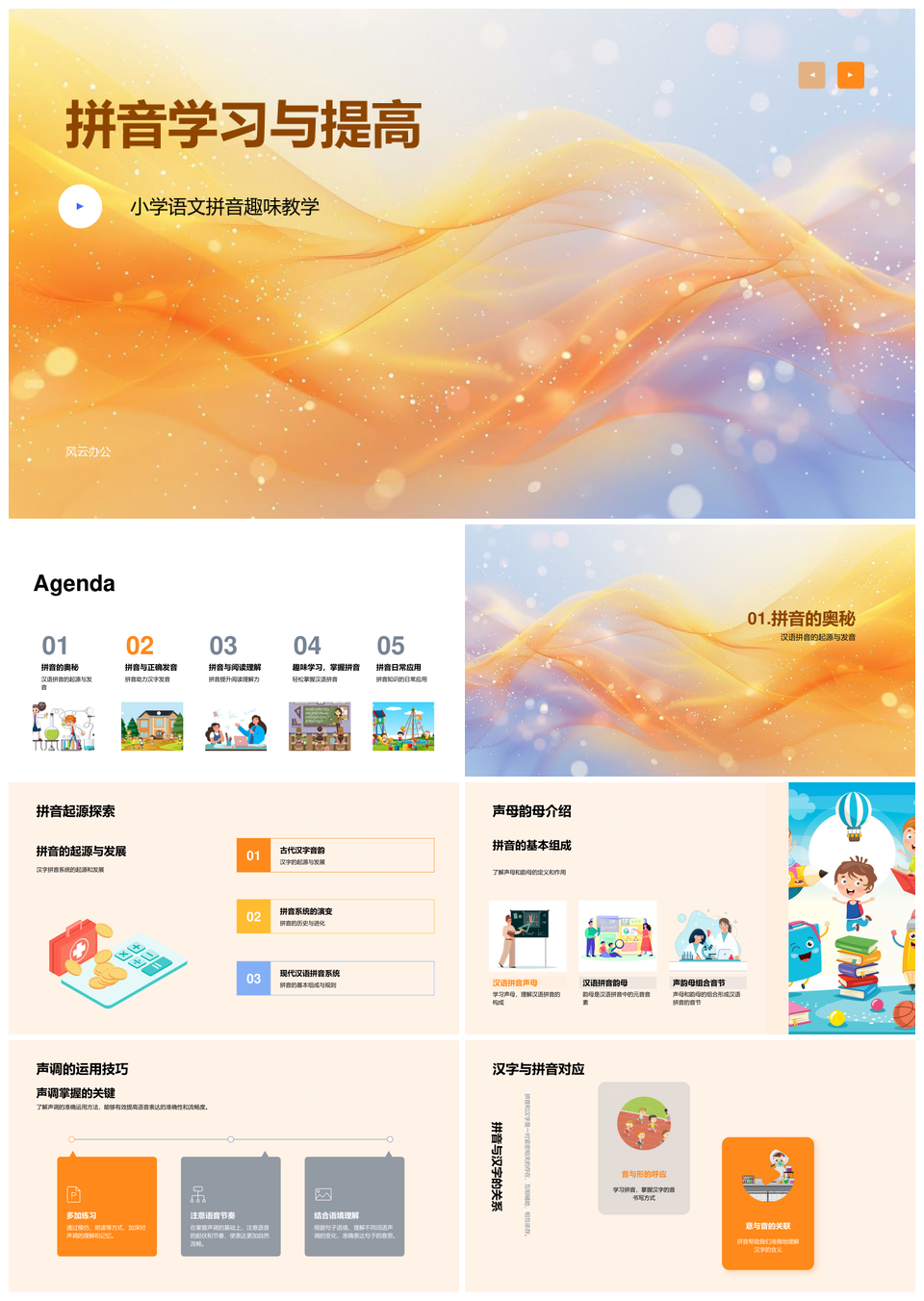 风云办公提供的拼音声韵调准音汉字趣味记忆书写学习PPT模板,下载格式为pptx,一共33页,作品中文字及图均可以修改和编辑,图片更改请在作品中右键图片并更换,文字修改请直接点击文字进行修改。